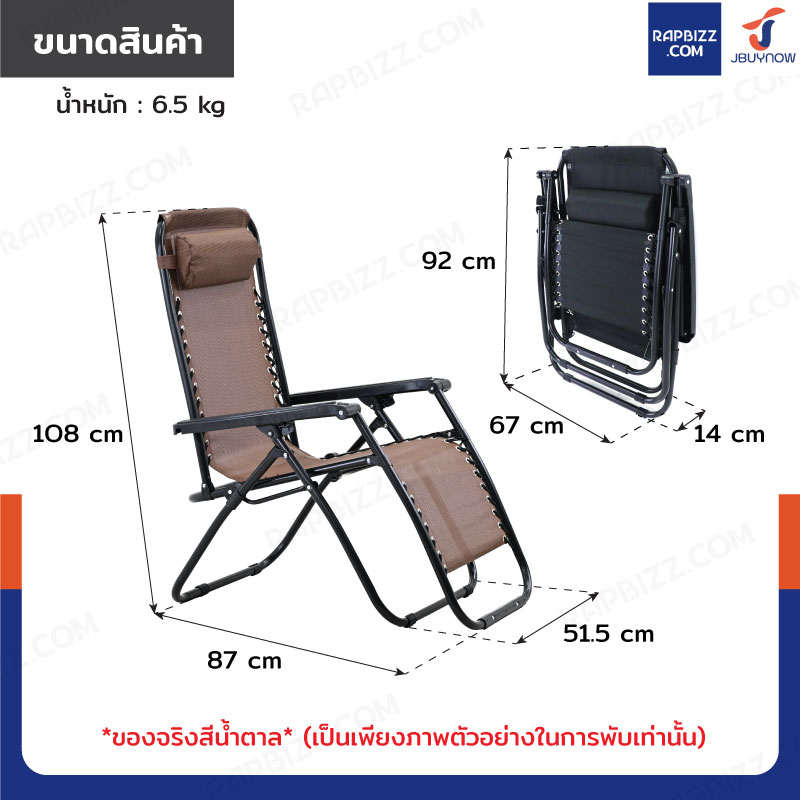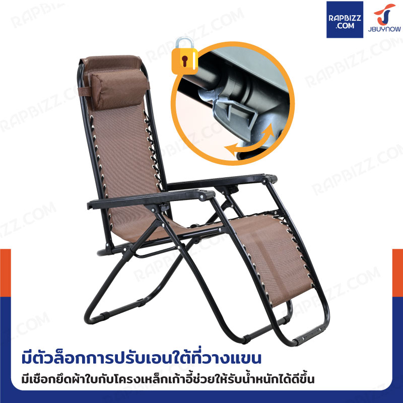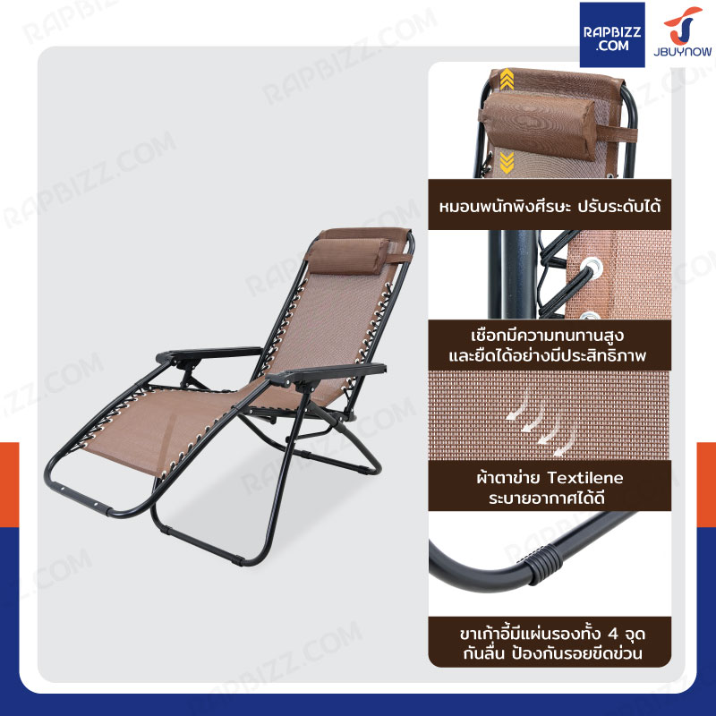 เก้าอี้พับ เก้าอี้พักผ่อน ปรับเอนนอนได้ 51.5x87x108 cm รับน้ำหนัก 150 kg สีกาแฟ YLFC-0271