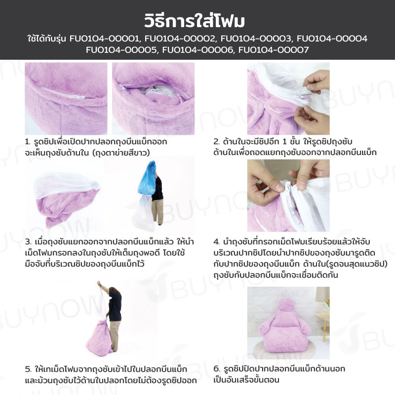 - มีซิป ป้องกันเม็ดโฟมรั่วไหล สามารถถ่าย/เติมเม็ดโฟมได้ตามต้องการ