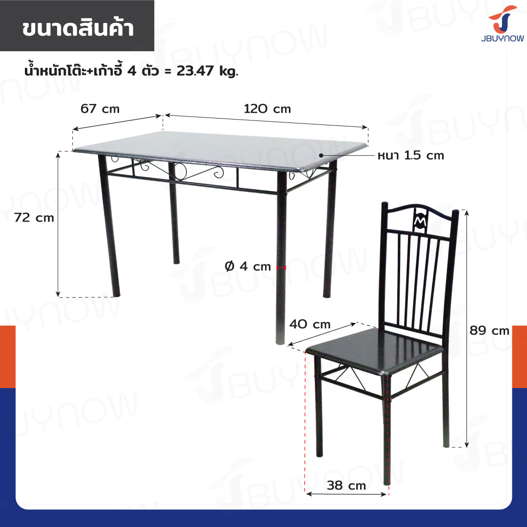 ชุดโต๊ะรับประทานอาหาร โต๊ะกินข้าว 4 ที่นั่ง 120x67x72 ซม. 403-17B