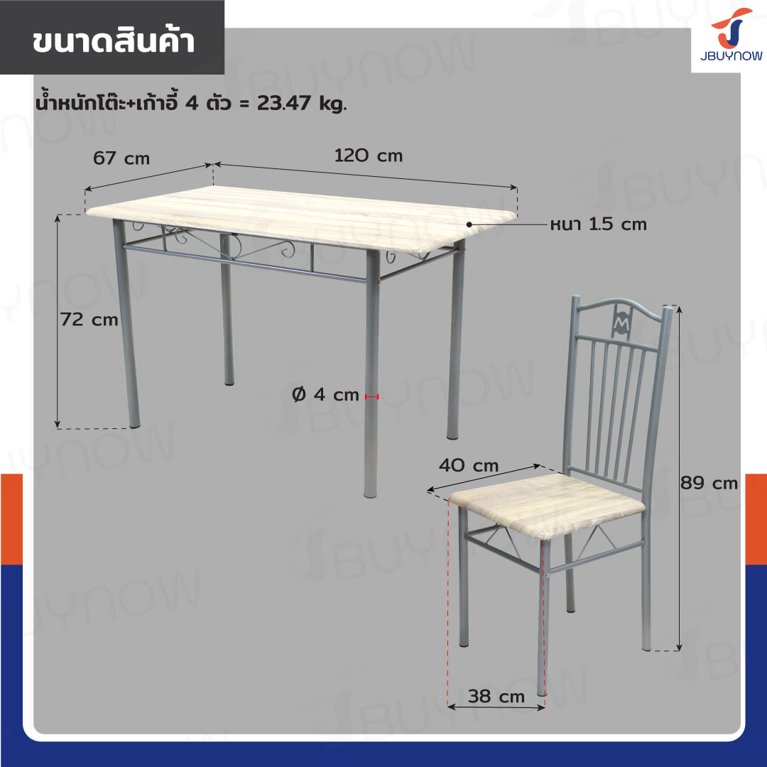 ชุดโต๊ะรับประทานอาหาร โต๊ะกินข้าว 4 ที่นั่ง 120x67x72 ซม. 403-160S