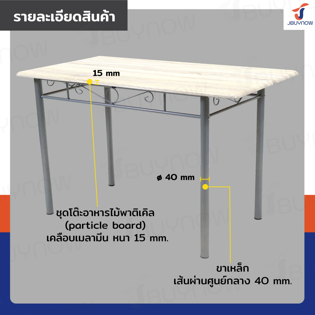 - ชุดโต๊ะอาหารไม้พาติเคิล (particle board) เคลือบเมลามีน ป้องกันการหลุดลอก ขีดข่วน และน้ำซึม