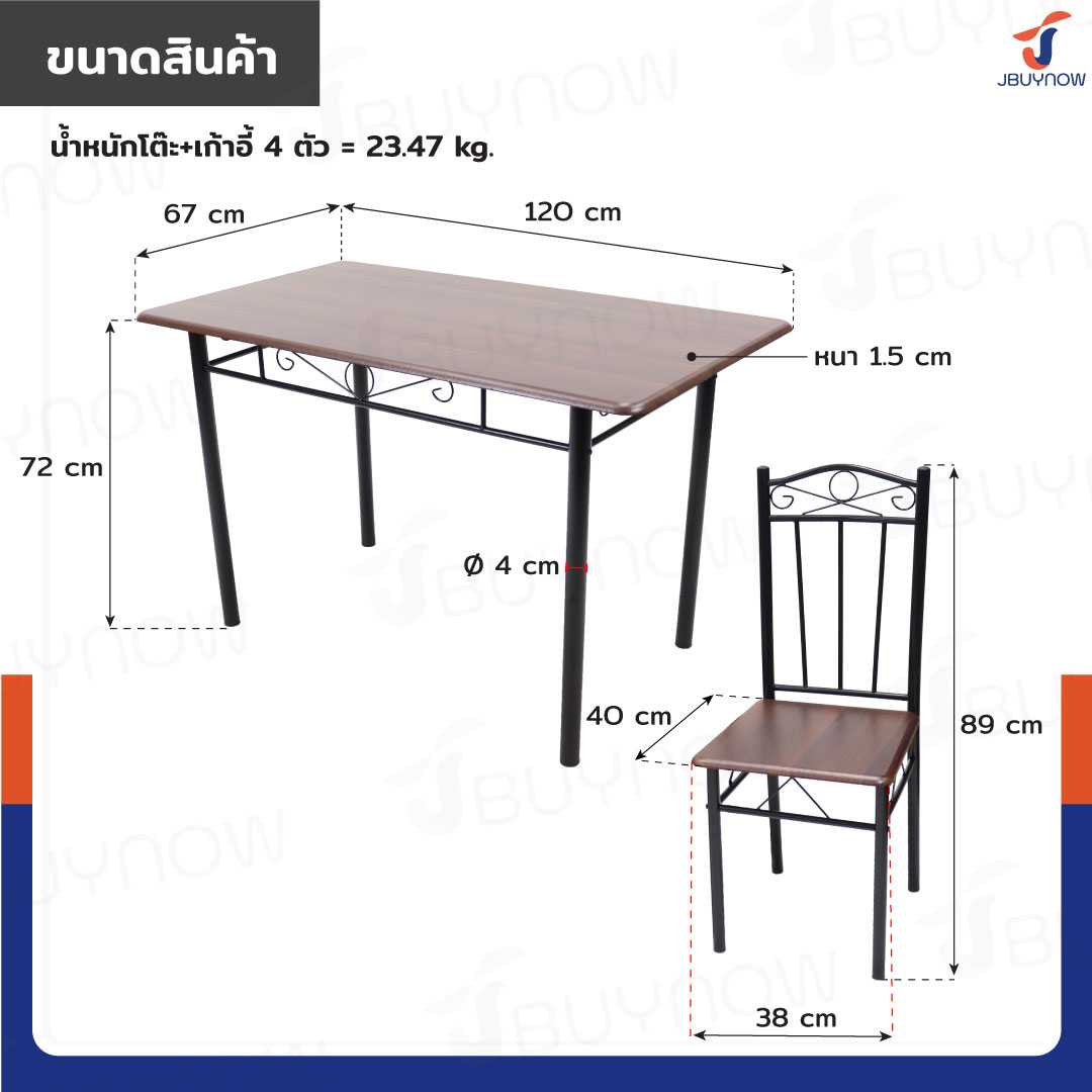 - ขนาดโต๊ะ 120x67x72 cm