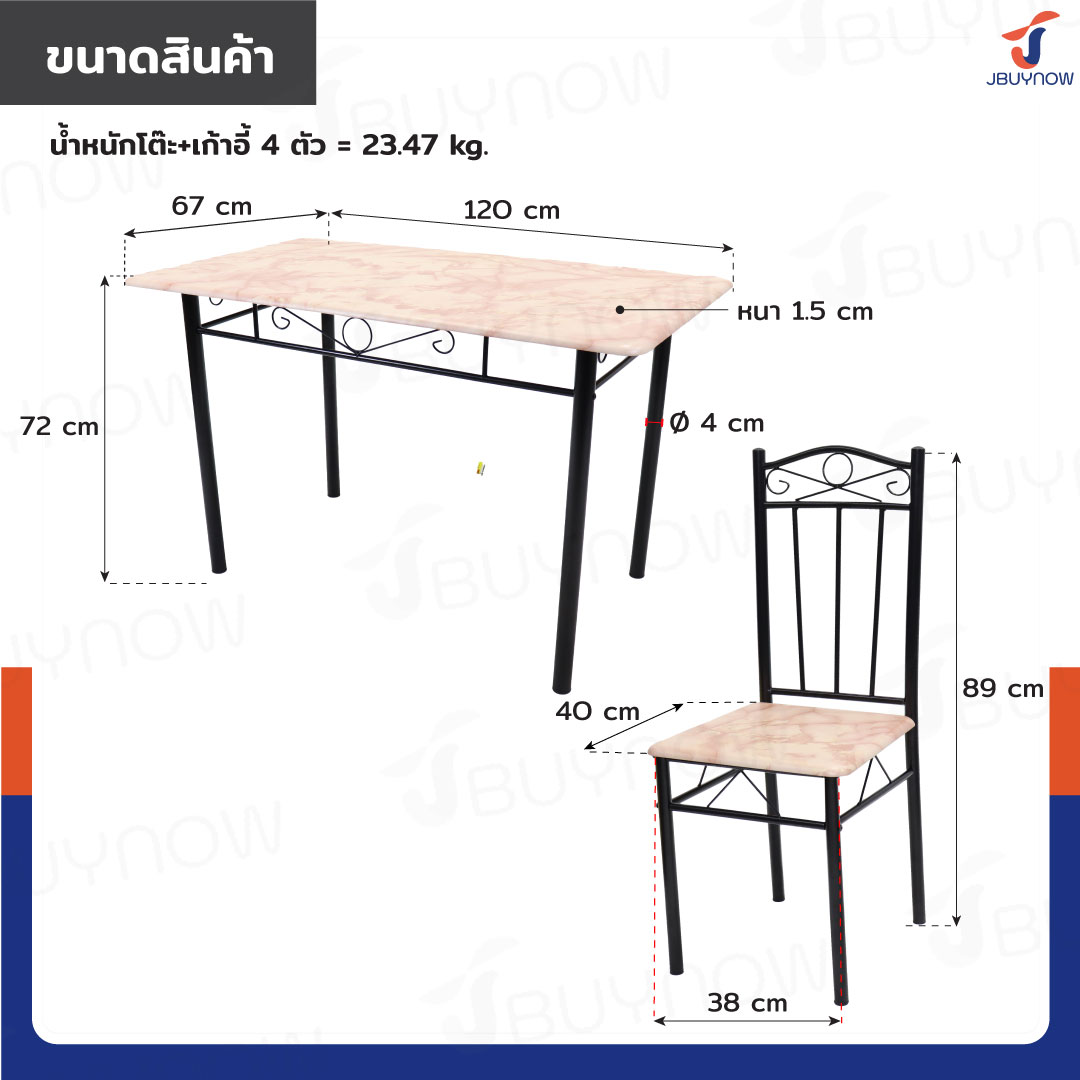 ชุดโต๊ะรับประทานอาหาร โต๊ะกินข้าว 4 ที่นั่ง 120x67x72 ซม.1202-14B