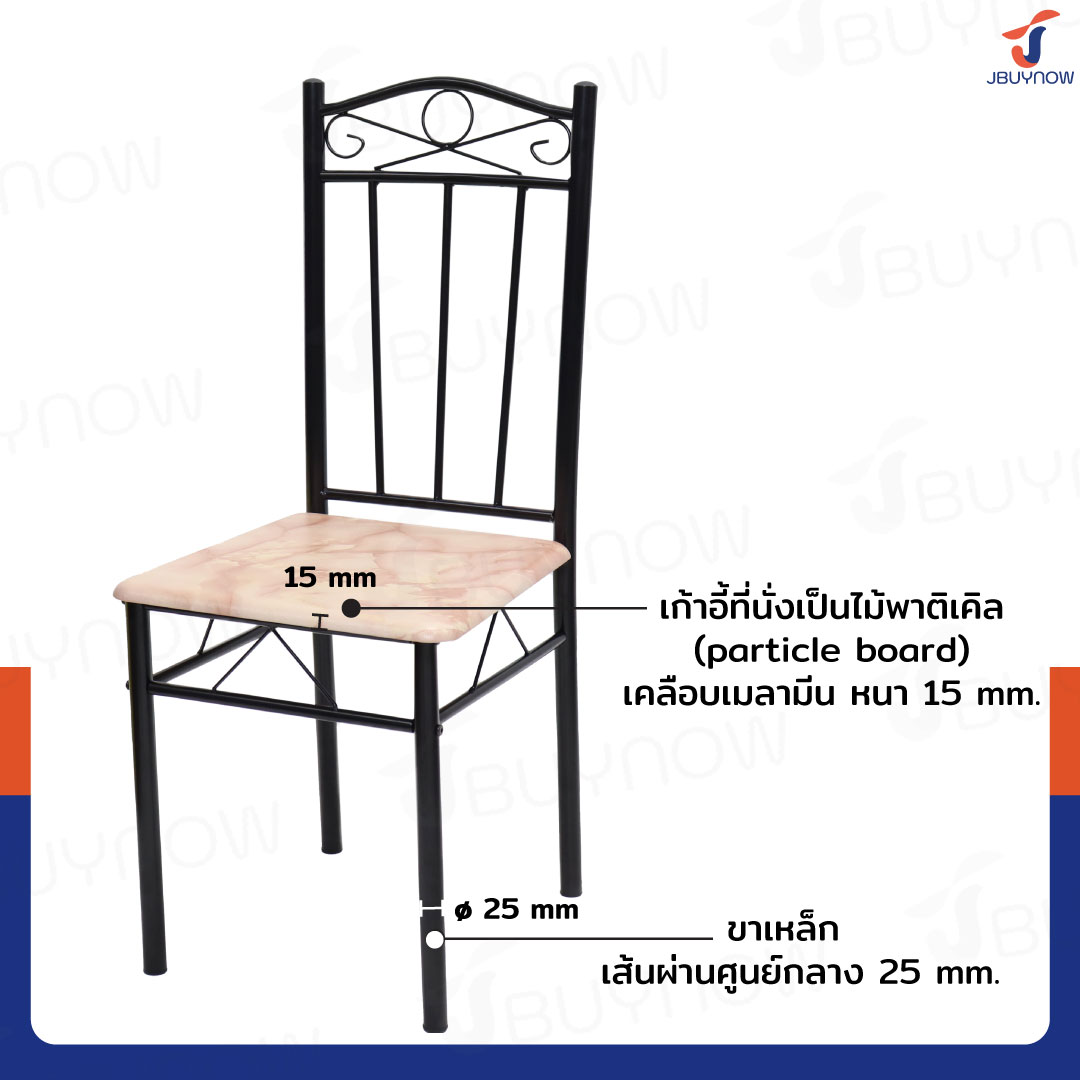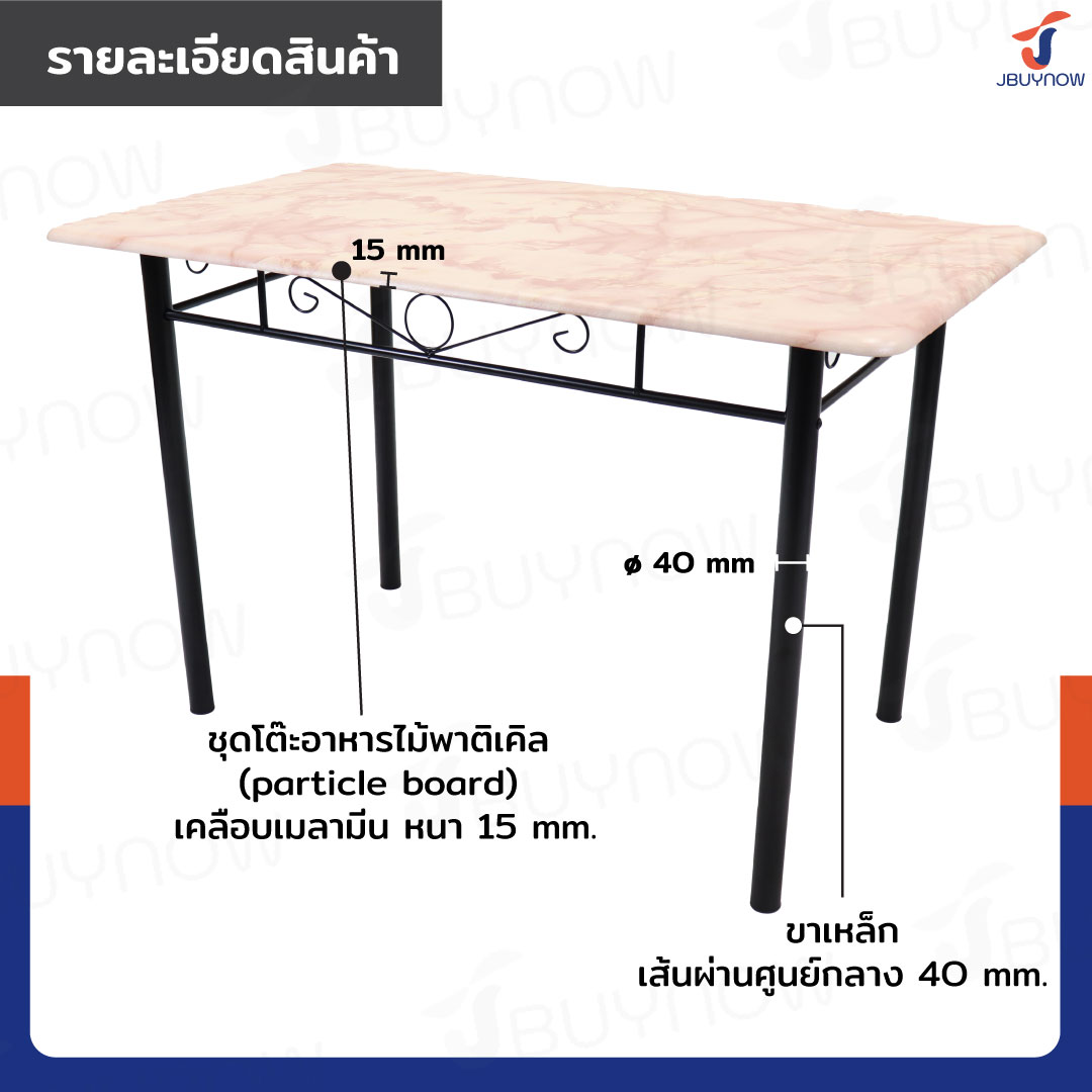 - ชุดโต๊ะอาหารไม้พาติเคิล (particle board) เคลือบเมลามีน ป้องกันการหลุดลอก ขีดข่วน และน้ำซึม