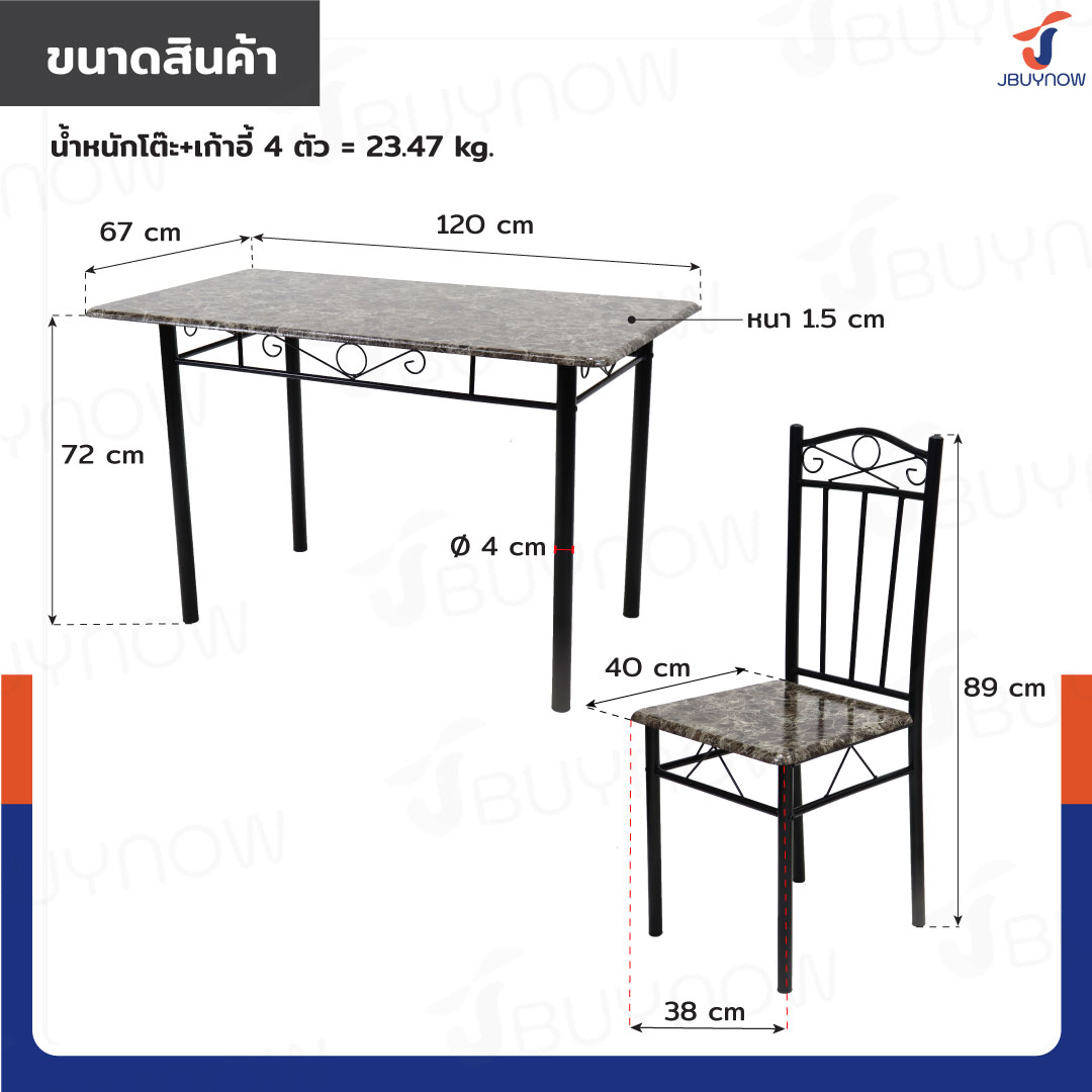 ชุดโต๊ะรับประทานอาหาร โต๊ะกินข้าว 4 ที่นั่ง 120x67x72 ซม. 1202-16B