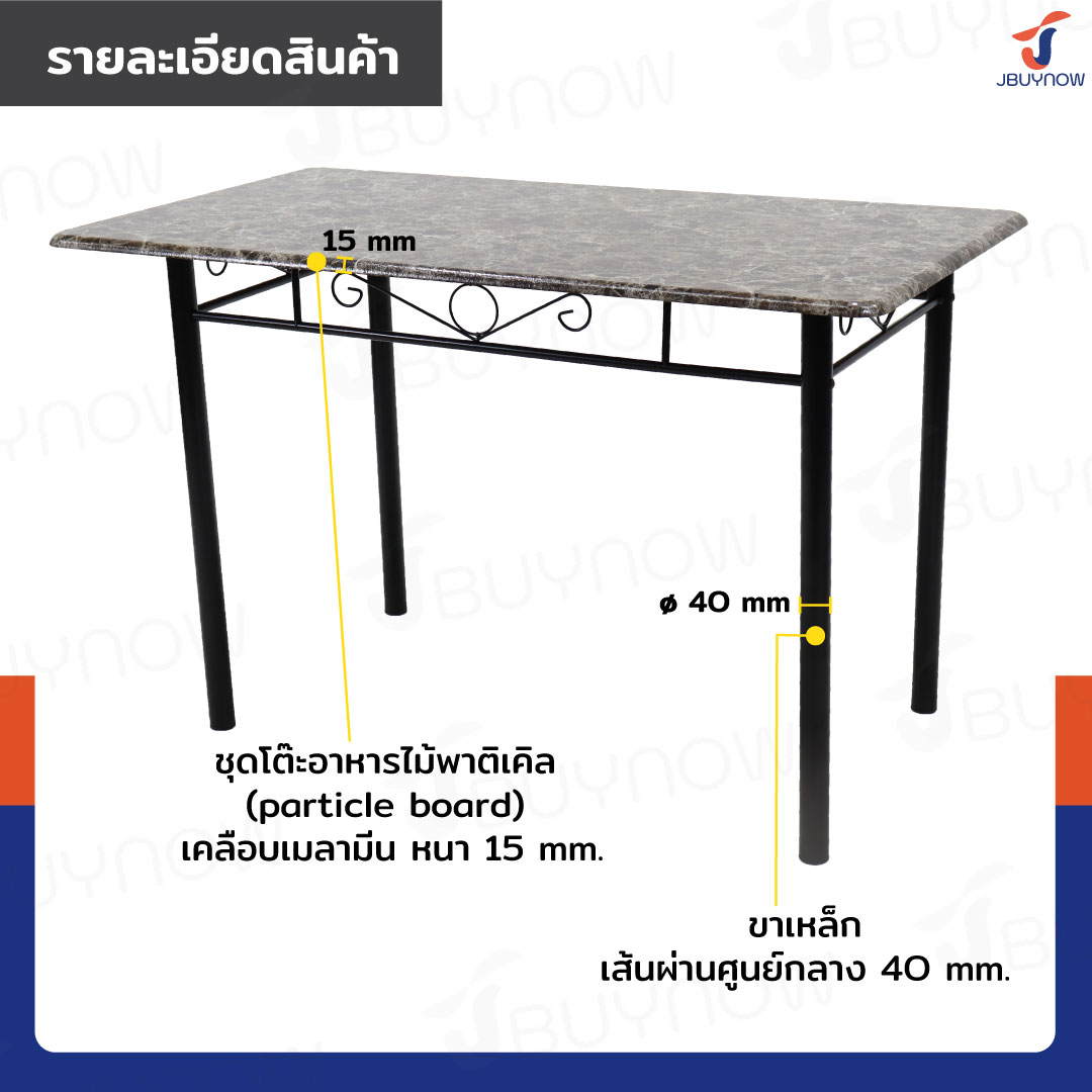 - ชุดโต๊ะอาหารไม้พาติเคิล (particle board) เคลือบเมลามีน ป้องกันการหลุดลอก ขีดข่วน และน้ำซึม