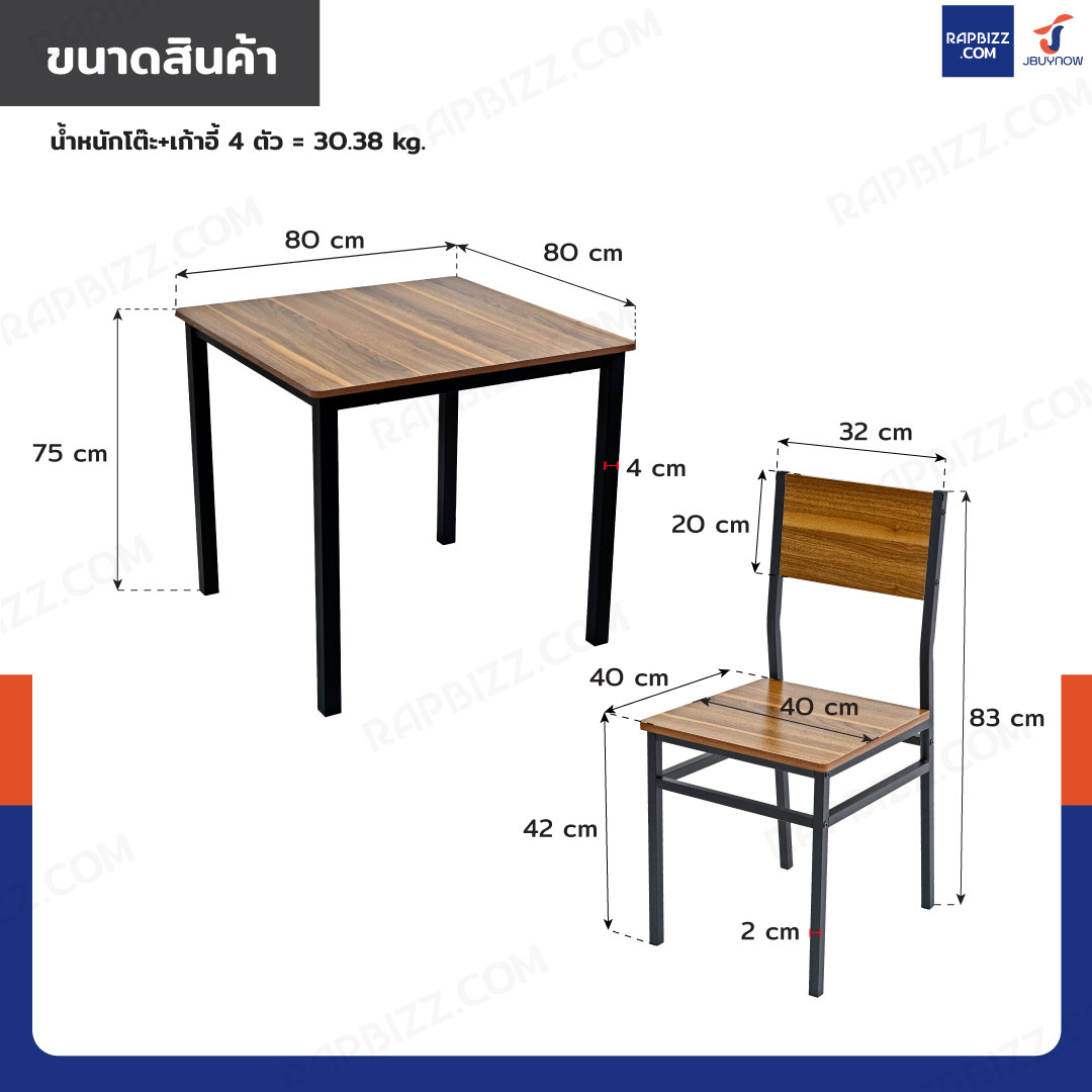 - ขนาดหน้าโต๊ะ: 80x80 cm