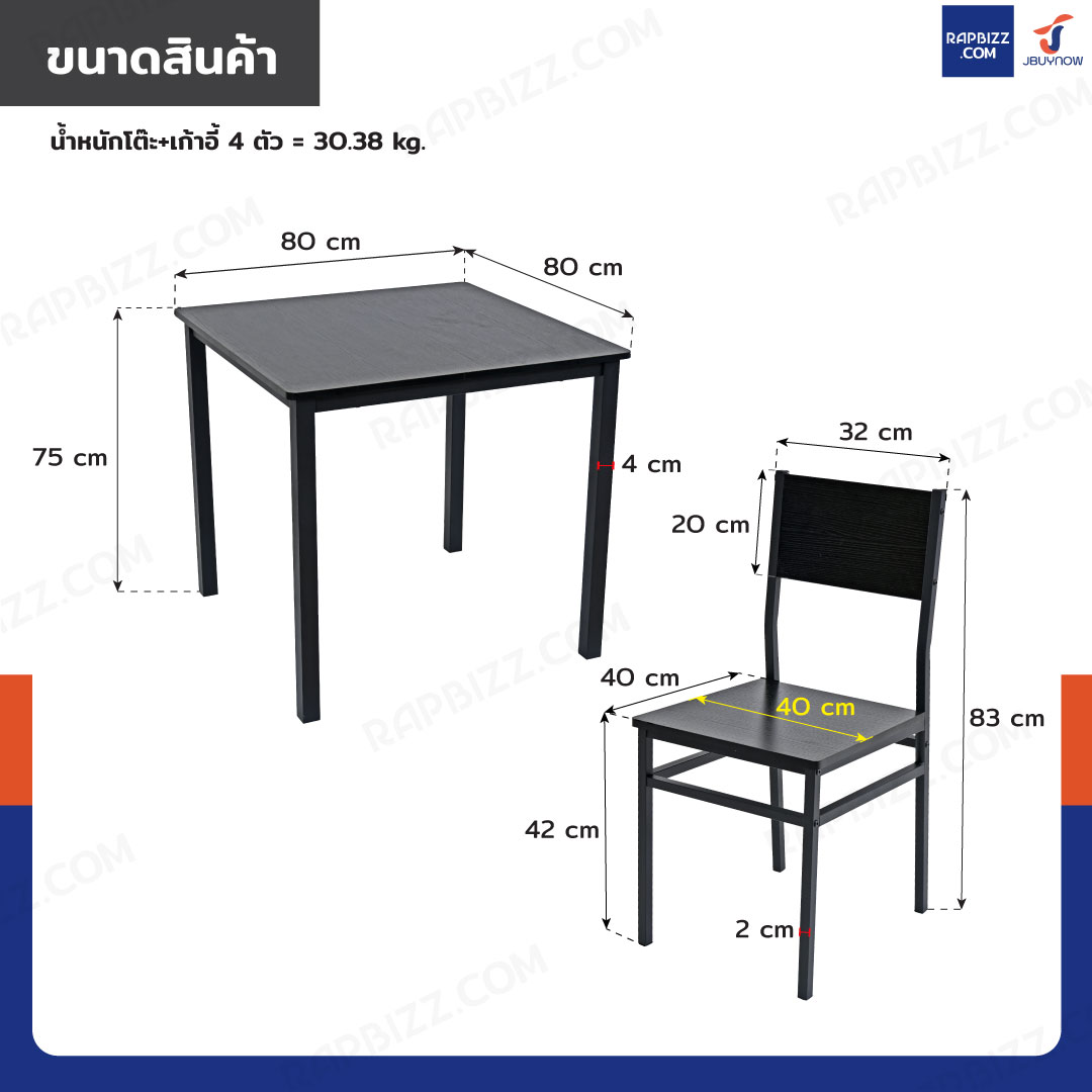 - ขนาดเก้าอี้: 40x40x83 cm/ตัว