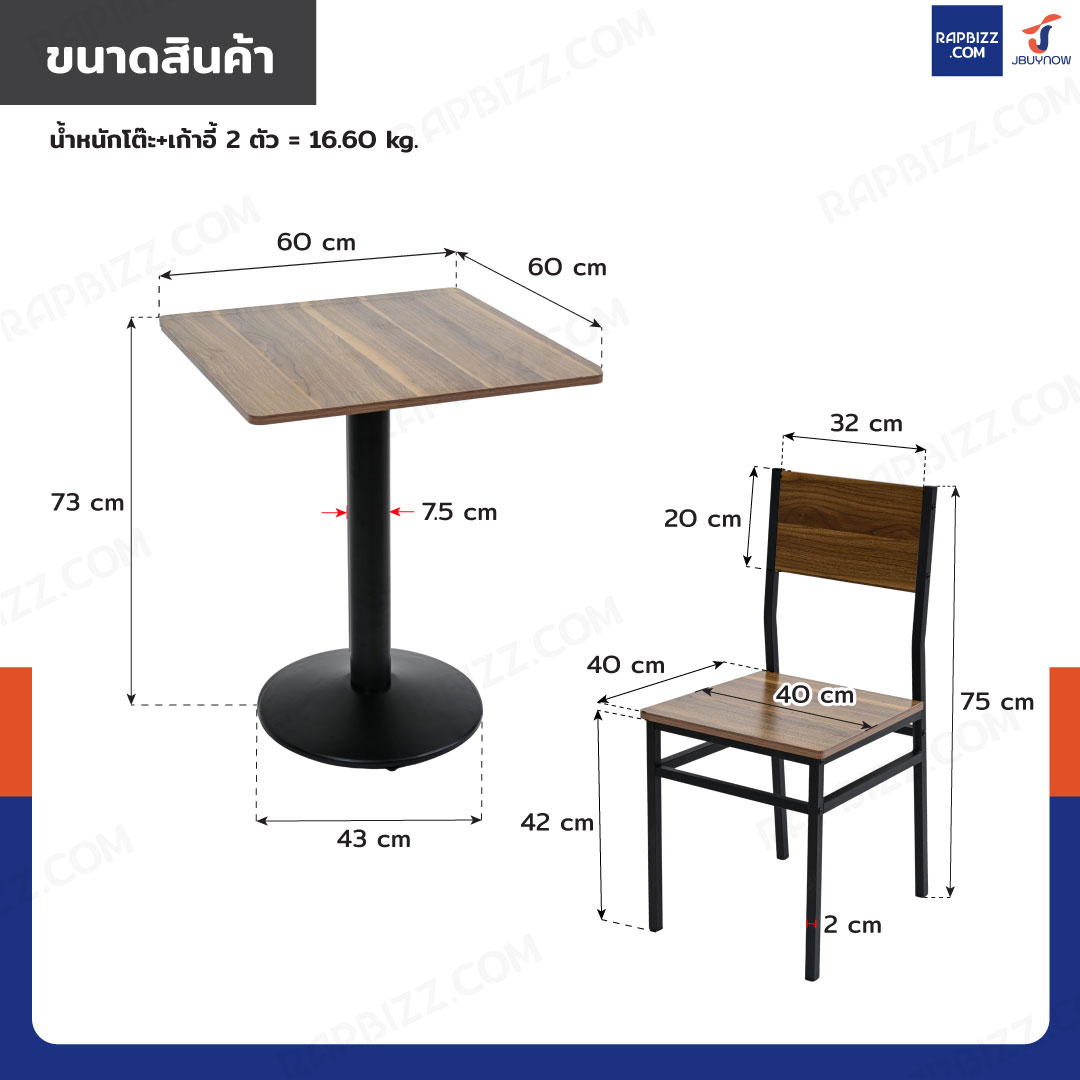 - ขนาดโต๊ะ: 60x60x73 cm