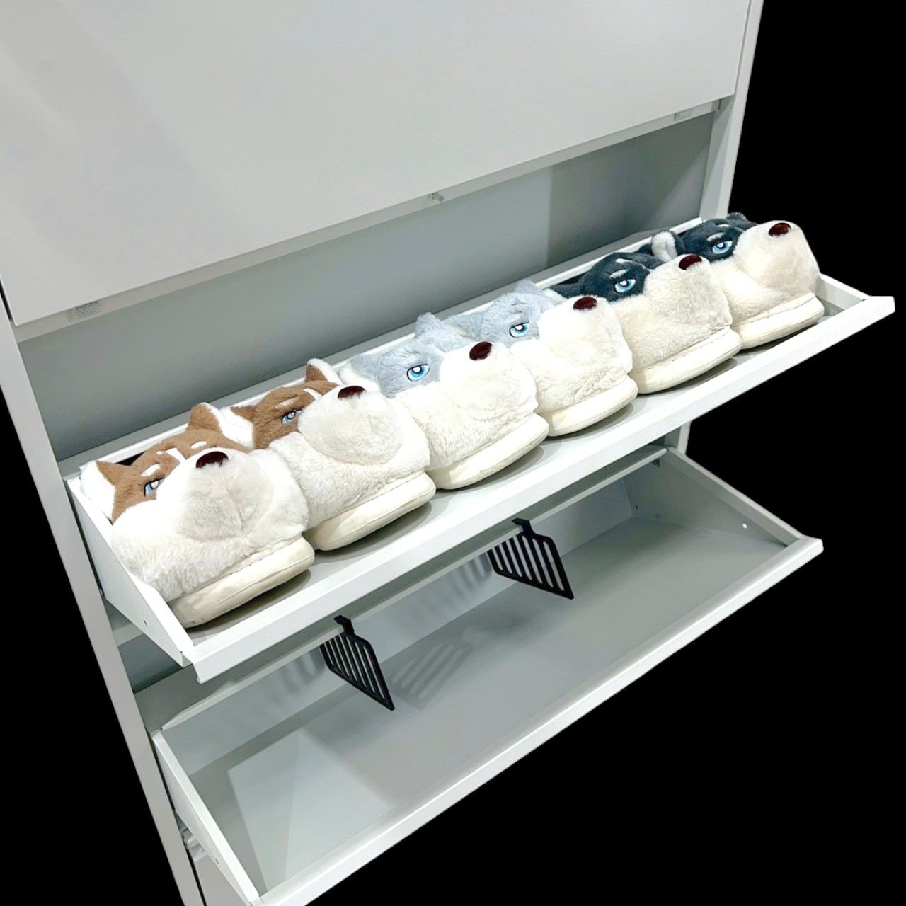 - ชั้นวางแบบบานพับติดกับผนัง สามารถใส่รองเท้าได้ทุกประเภท