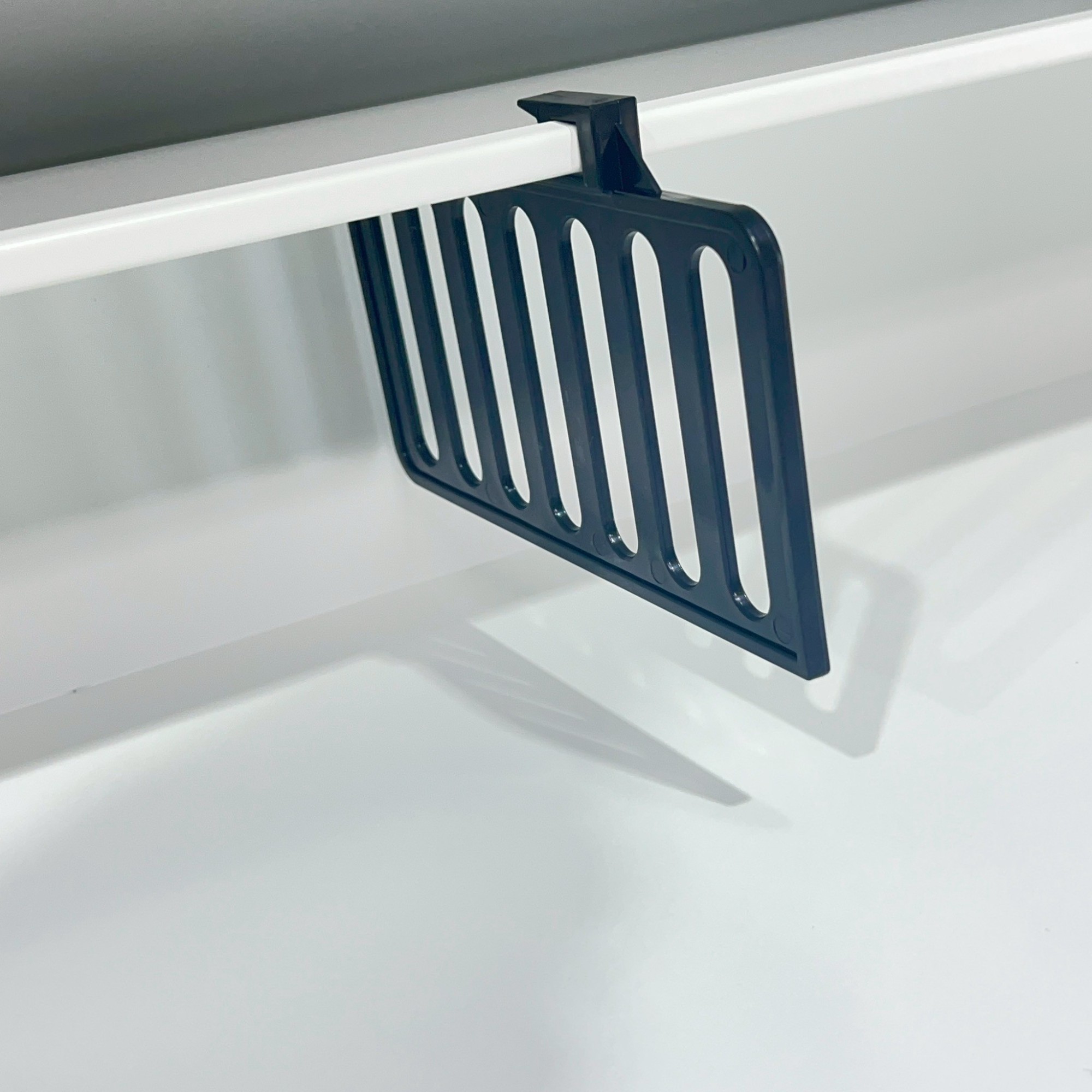 - มีแผ่นกั้นรองเท้าสะดวกในการหยิบและจัดเก็บ