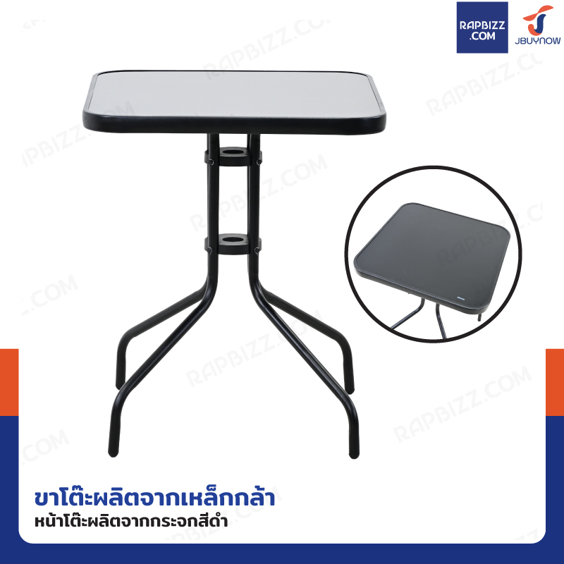 โต๊ะสนาม โต๊ะเหลี่ยม หน้าโต๊ะกระจกดำ 60x60x72 cm YLGT-005A