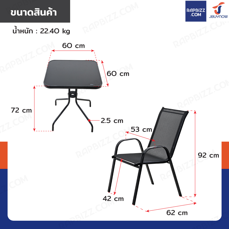 - ขนาดเก้าอี้: 53x62x92 cm/ตัว