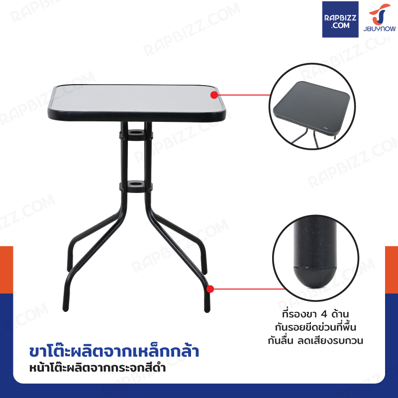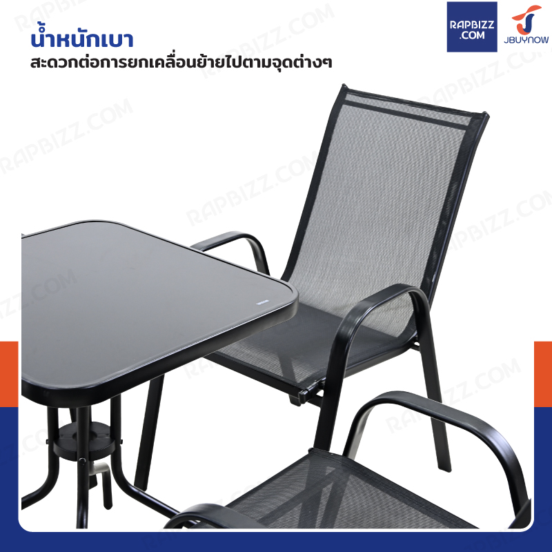 ชุดโต๊ะเก้าอี้สนาม 2 ที่นั่ง โต๊ะเหลี่ยม กระจกดำ YLGT-005A