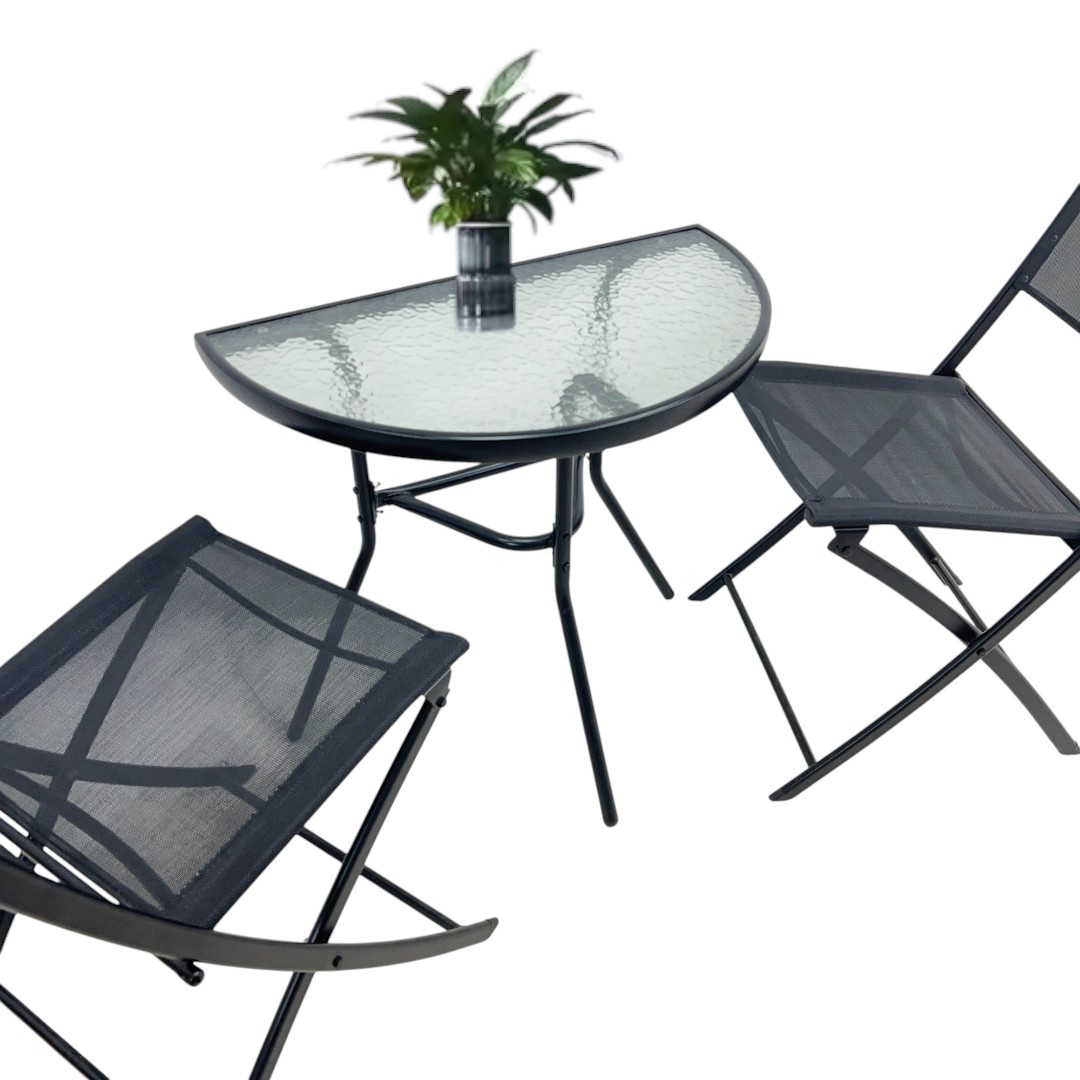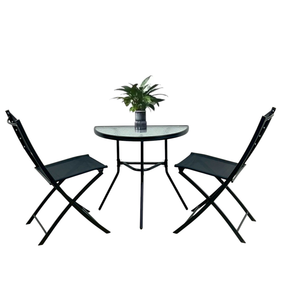 ชุดโต๊ะสนาม 2 ที่นั่ง ติดผนัง โต๊ะกระจกครึ่งวงกลม