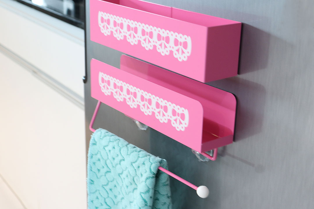 ชั้นวางติดตู้เย็นแถบแม่เหล็ก สีชมพู