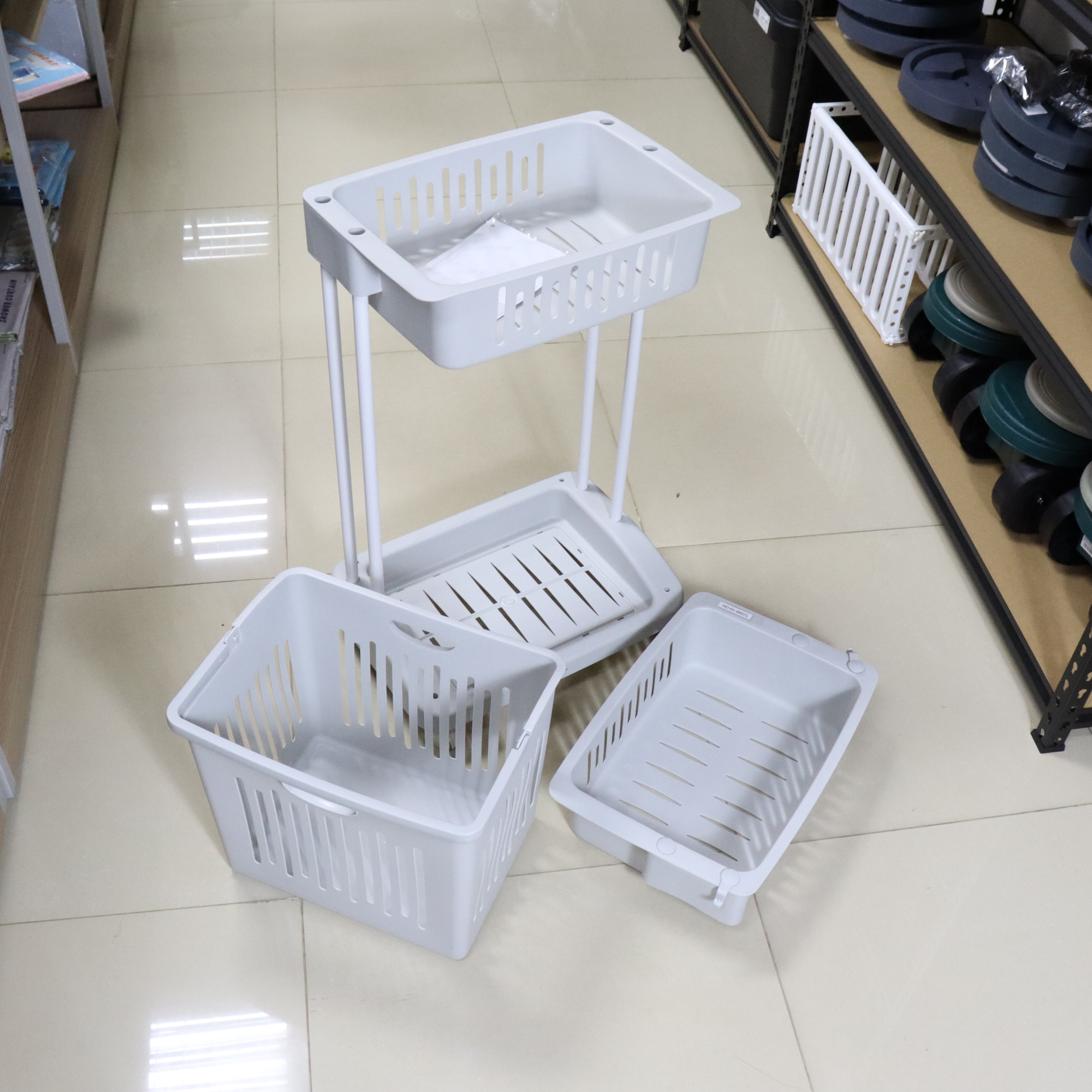 ตะกร้าใส่ผ้า 3 ชั้น สีเทา มีล้อเคลื่อนย้ายสะดวก ใส่ของได้เยอะ แข็งแรงทนทาน
