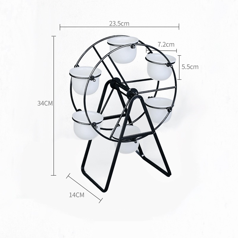 Ferris wheel plant stand กระถางดอกไม้เซรามิก 6 ใบ ทรงชิงช้าสวรรค์ 24x14x34 cm สีดำ ST0531-29BL