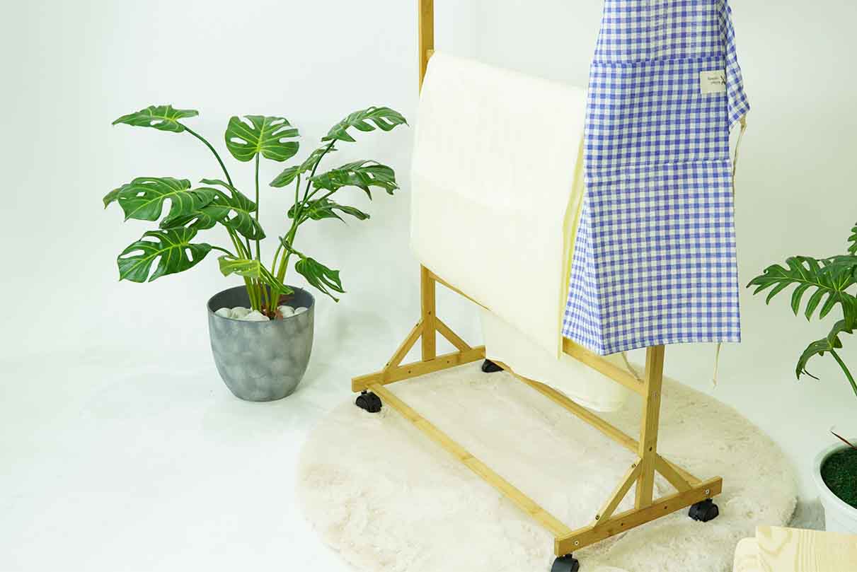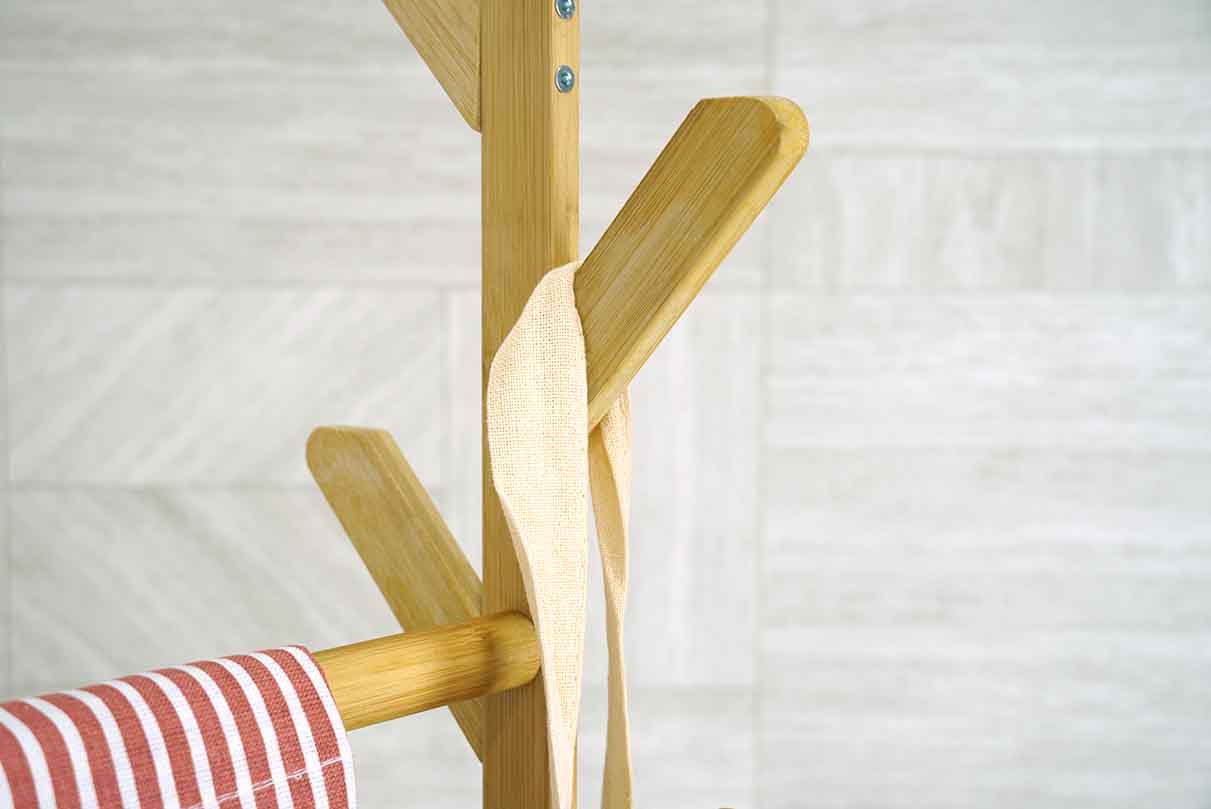 Clothes Rack ราวแขวนผ้าอเนกประสงค์ ราวไม้ไผ่ มีล้อ 70x38x152 cm ST06071