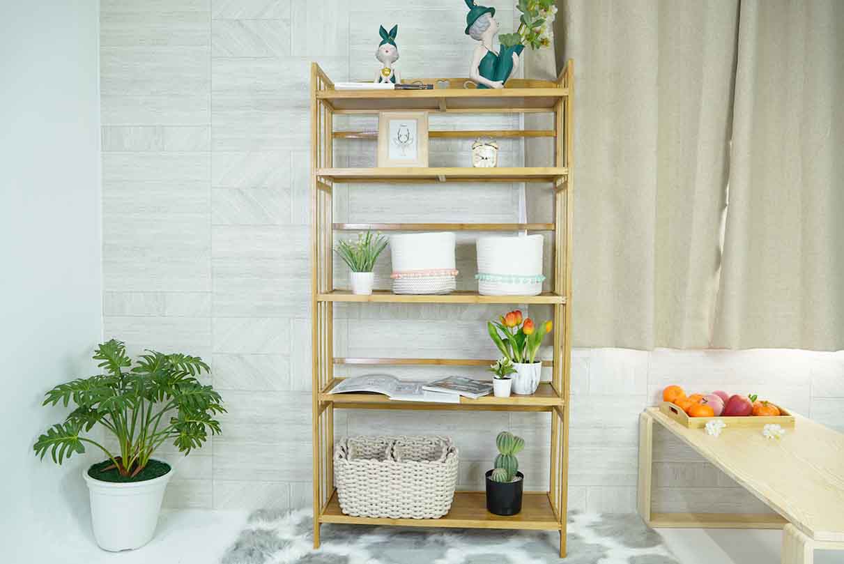 Bamboo Shelf ชั้นไม้ไผ่ ชั้นหนังสือ ชั้นวางของ ชั้นอเนกประสงค์ 5 ชั้น 80x25x157 cm ST06074