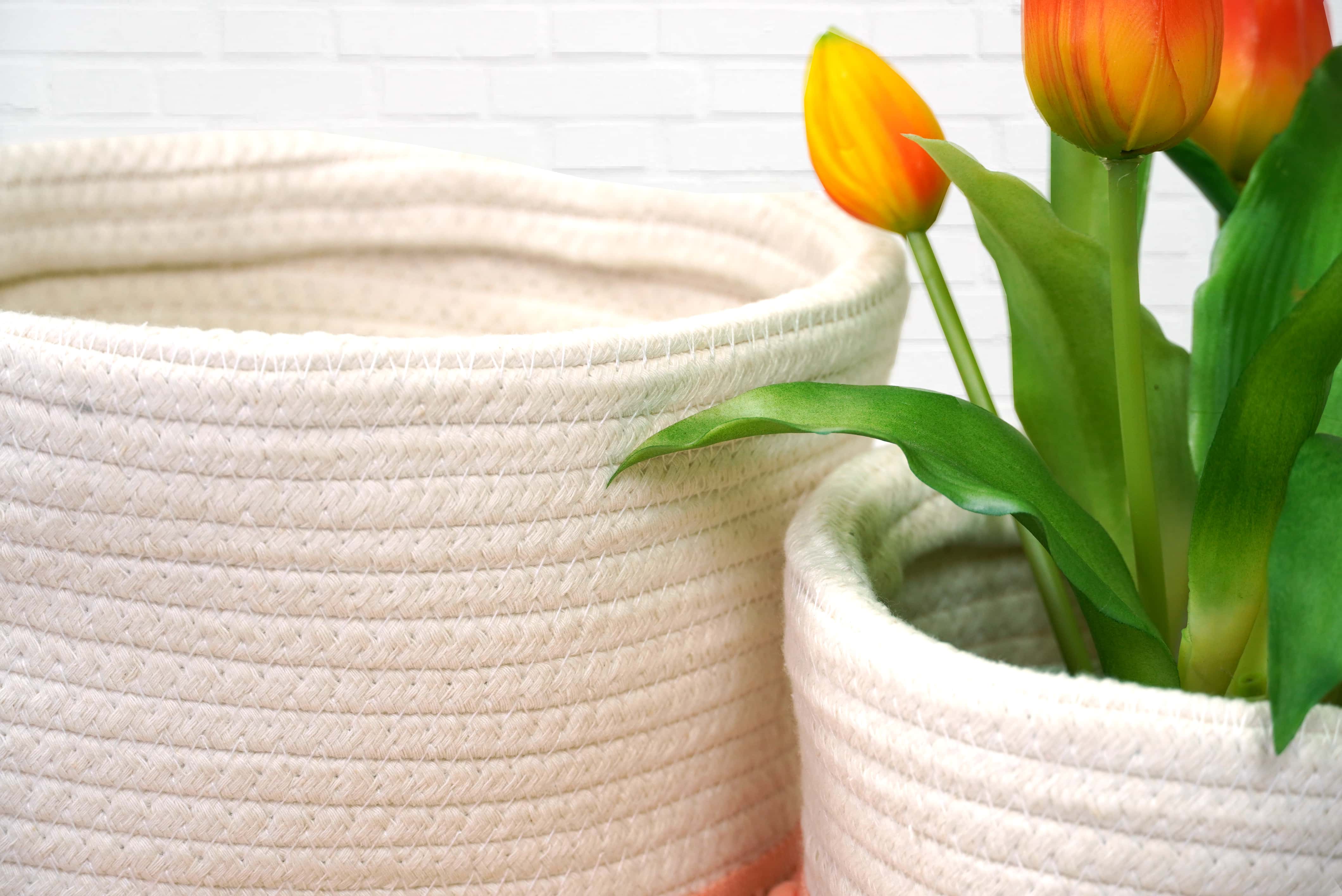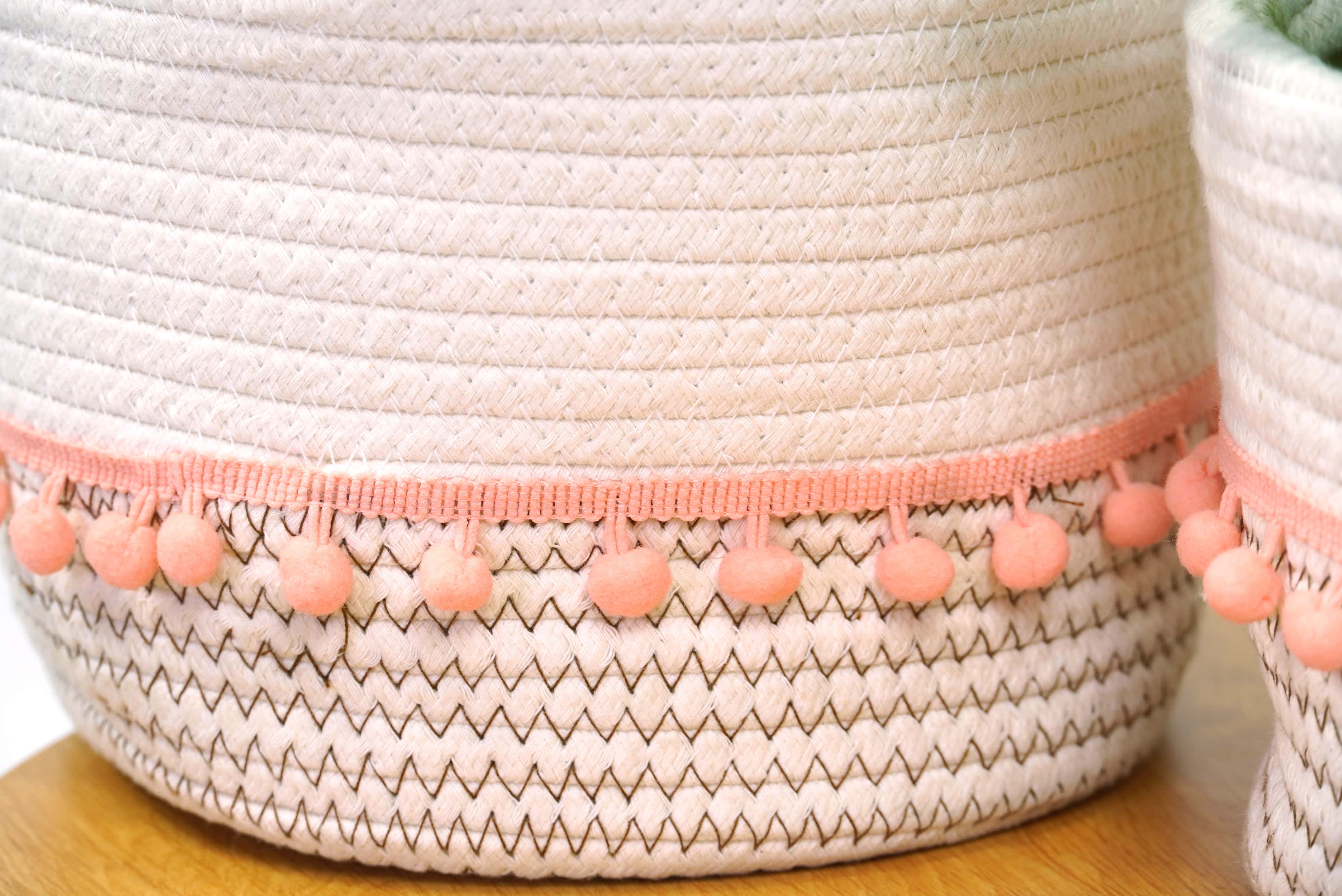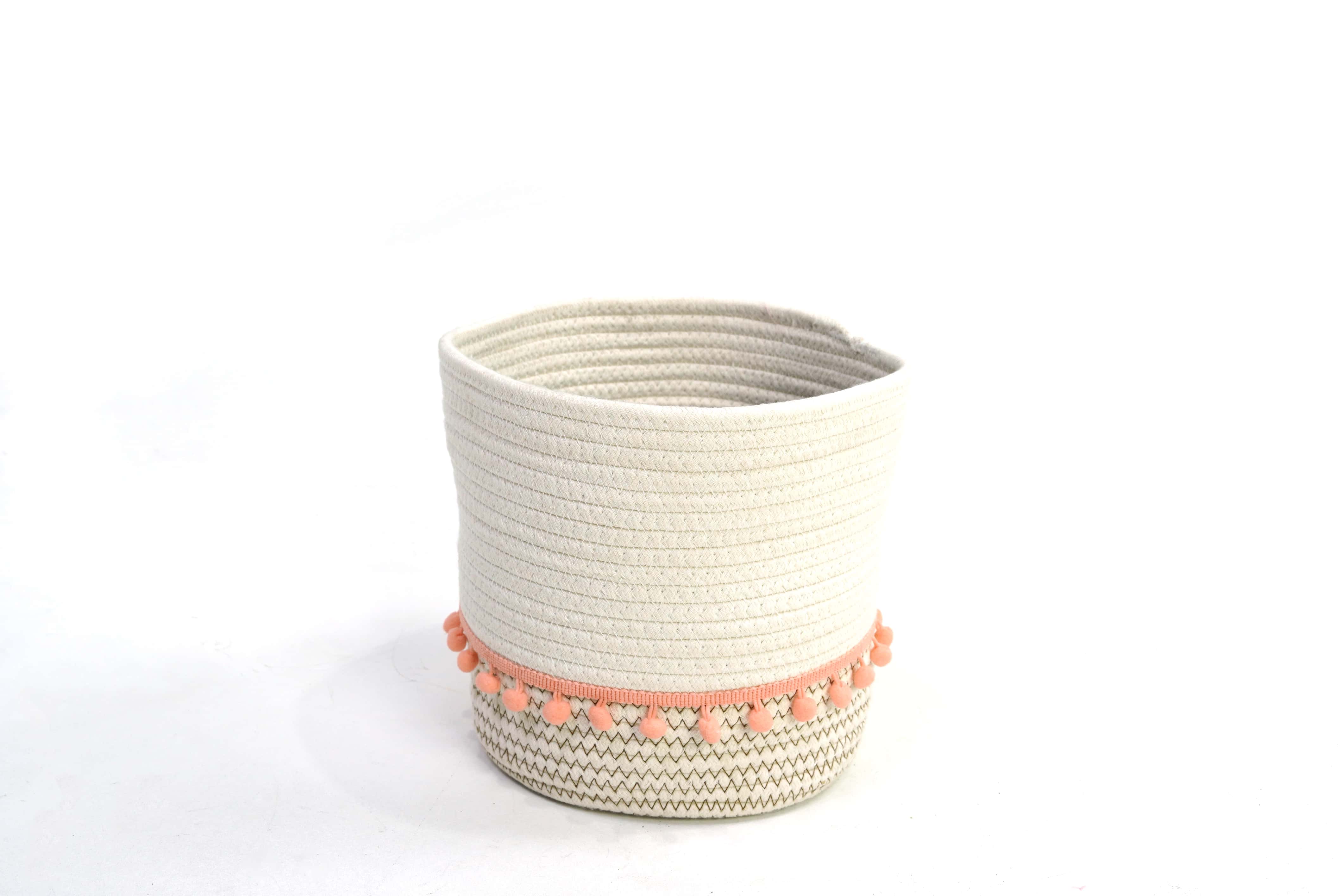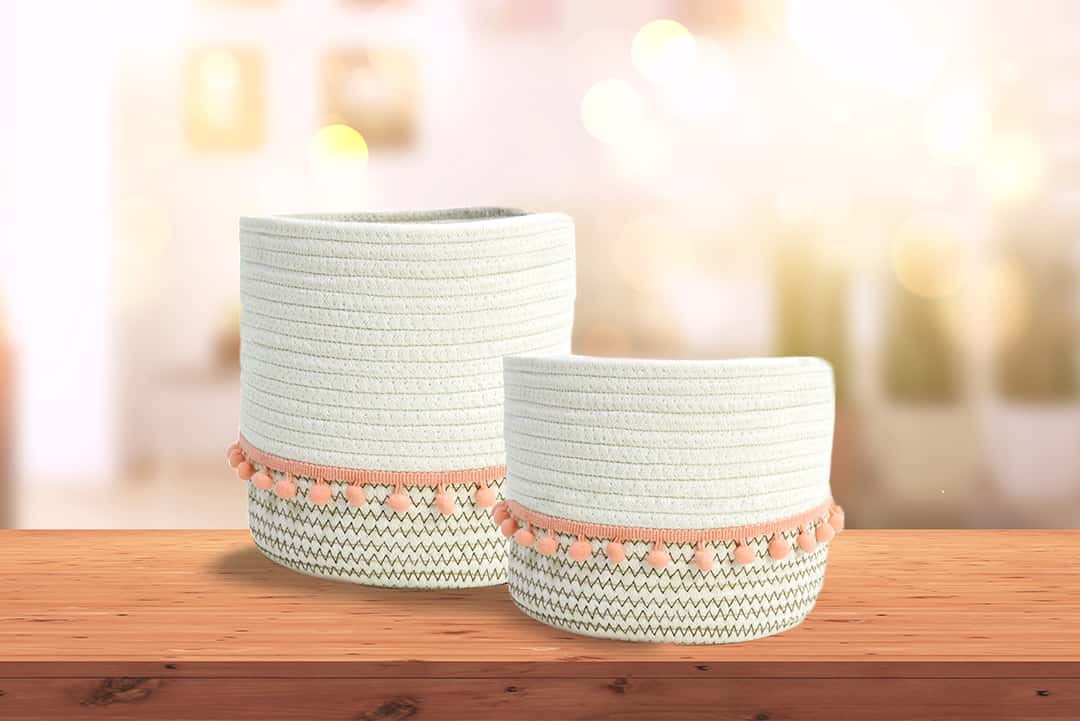 Storage basket set ชุดตะกร้าเก็บของ 2 ชิ้น 20x20x21 cm และ 19x16x17 cm คาดสีส้ม ชมพู EJDS-PI