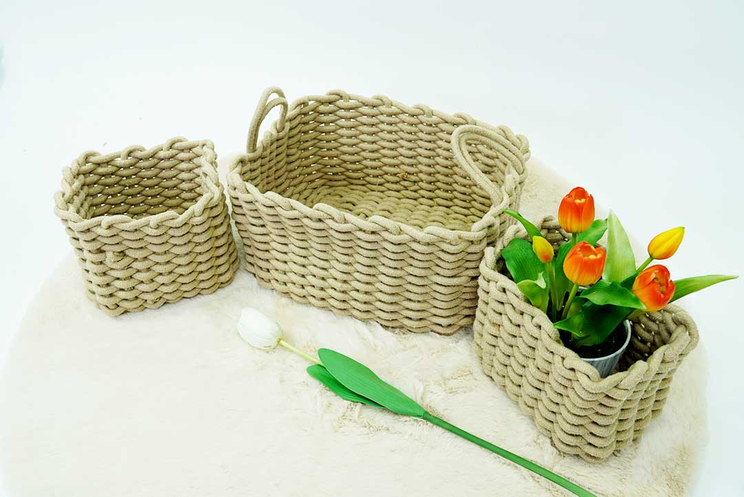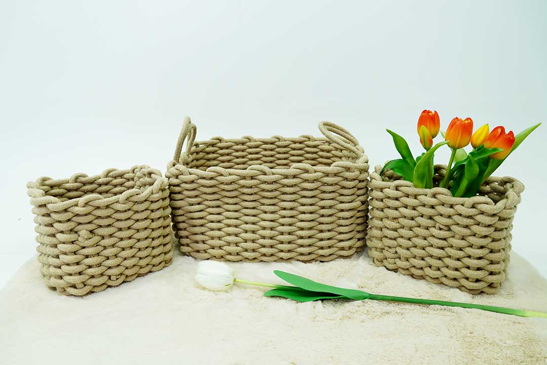 Rope basket set3pcs.ชุดตะกร้าเก็บของ 3 ชิ้น/เซ็ต สีกากีรุ่น LWDE-KA