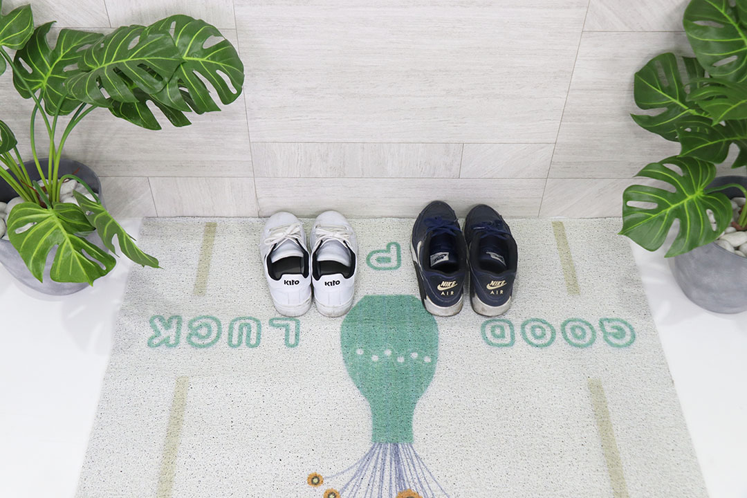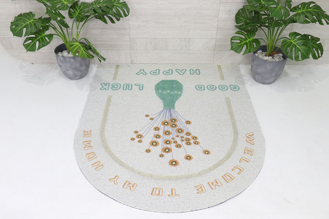 PVC floor mat พรมดักฝุ่น PVC ลายHappy แนวตั้ง 100x120 cm ST0715-19-1