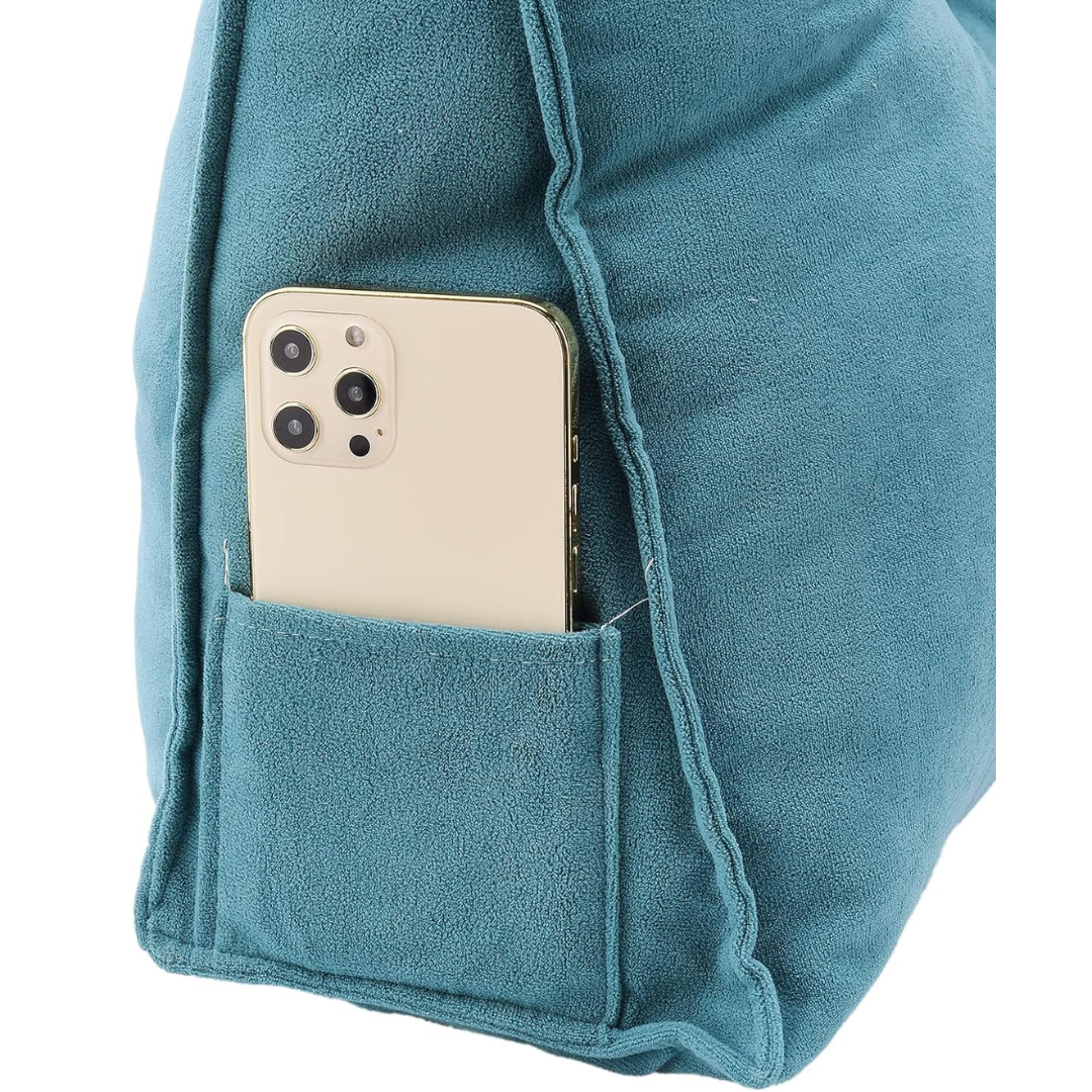 Back cushion หมอนอิง หมอนหัวเตียง สามเหลี่ยม กำมะหยี่ 2 หลุม 80x50x20 cm สีเขียว ST0715-24GL
