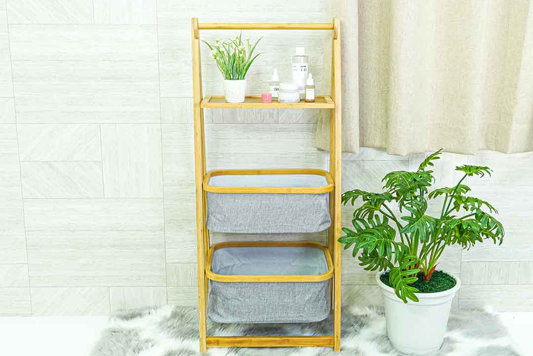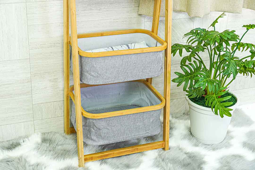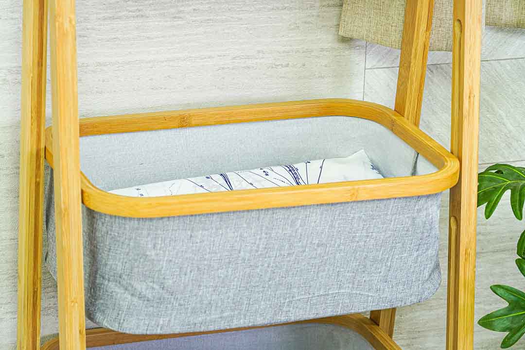 Foldable storage shelf ชั้นวางของ พับได้ ตะกร้าผ้า 2 ชั้น มีถาดวาง 45x33x108 cm ST210721-5