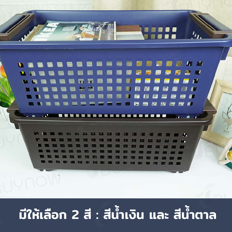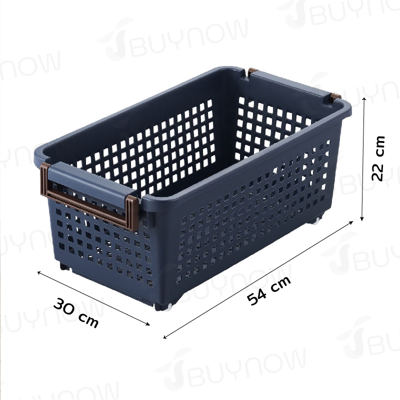 Basket ตะกร้ามีล้อ หูหิ้ว วางซ้อนได้ JP Quality 30×54×22 cm สีน้ำเงิน MA-2242