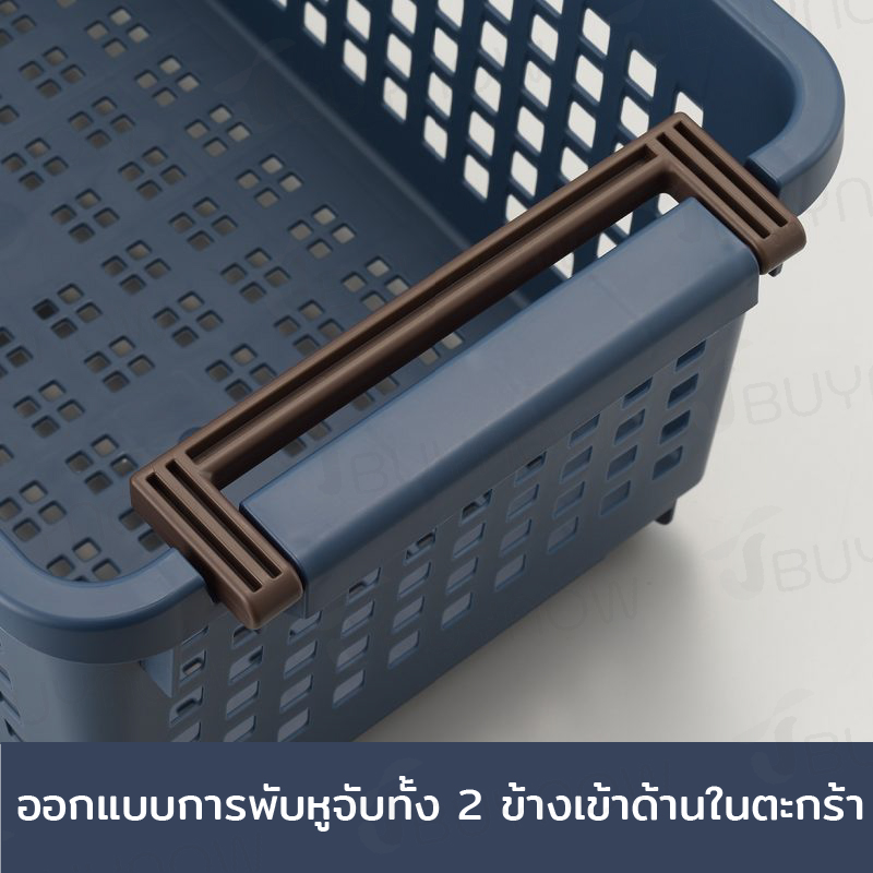 - ออกแบบการพับหูจับทั้ง 2 ข้างเข้าด้านในตะกร้า เพื่อวางซ้อนได้มากถึง 3 ชั้น