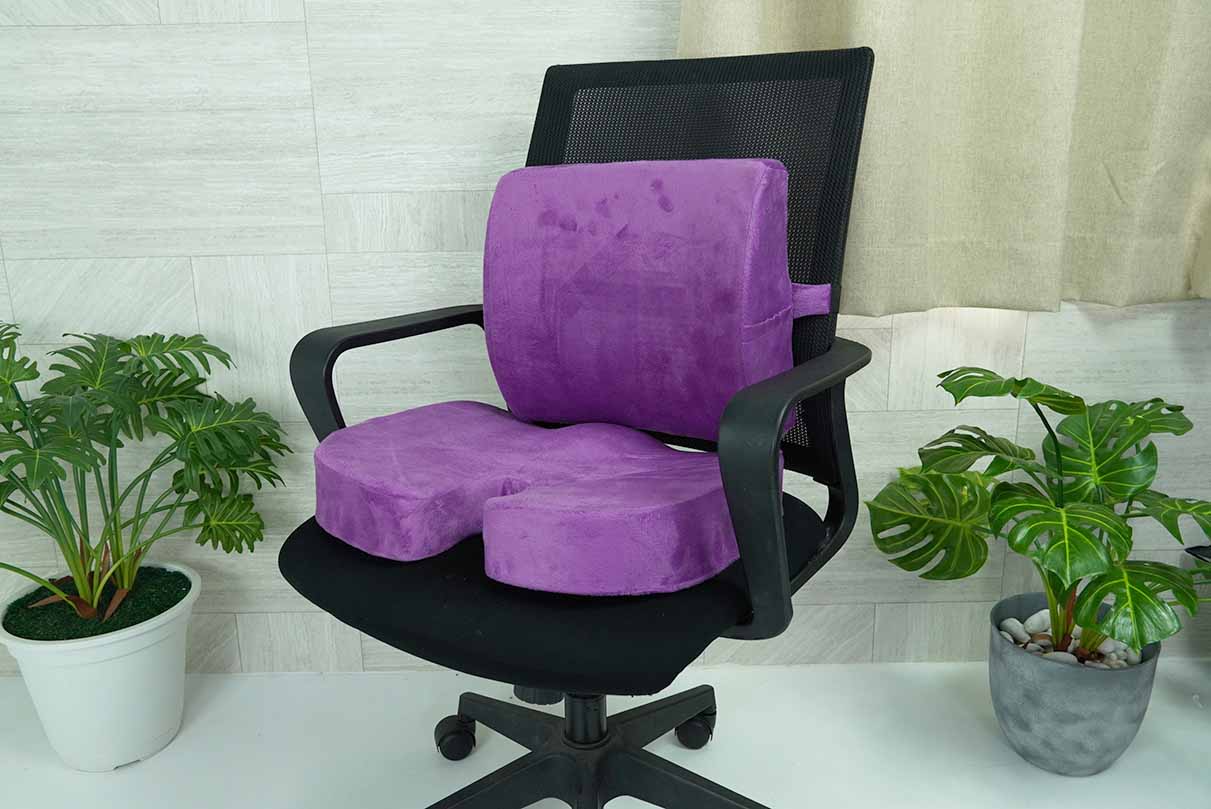Cushion set ชุดเบาะรองนั่ง 46x36x7 cm เบาะรองหลัง 33x34x12 cm เพื่อสุขภาพ ลดแรงกดทับ หุ้มผ้า สีม่วง ST211018PR