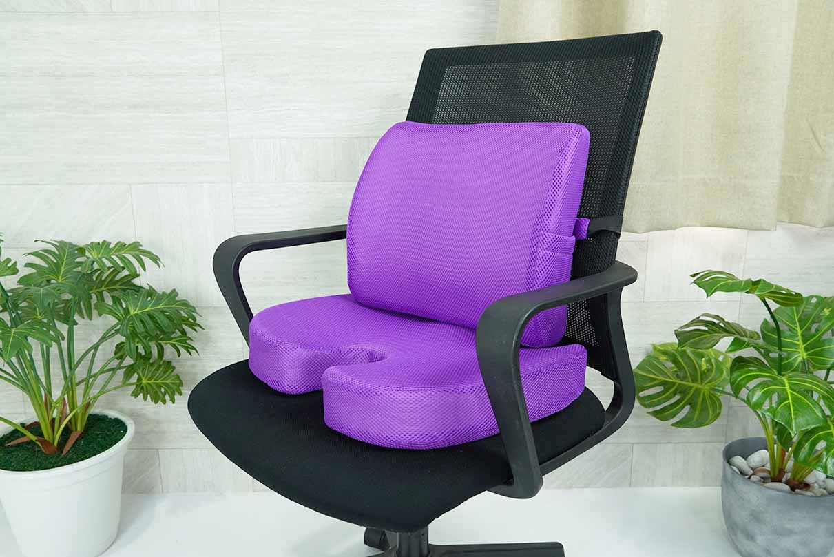 Cushion set ชุดเบาะรองนั่ง 46x36x7 cm เบาะรองหลัง 33x34x12 cm เพื่อสุขภาพ ลดแรงกดทับ หุ้มผ้าตาข่าย สีม่วง ST211019PR