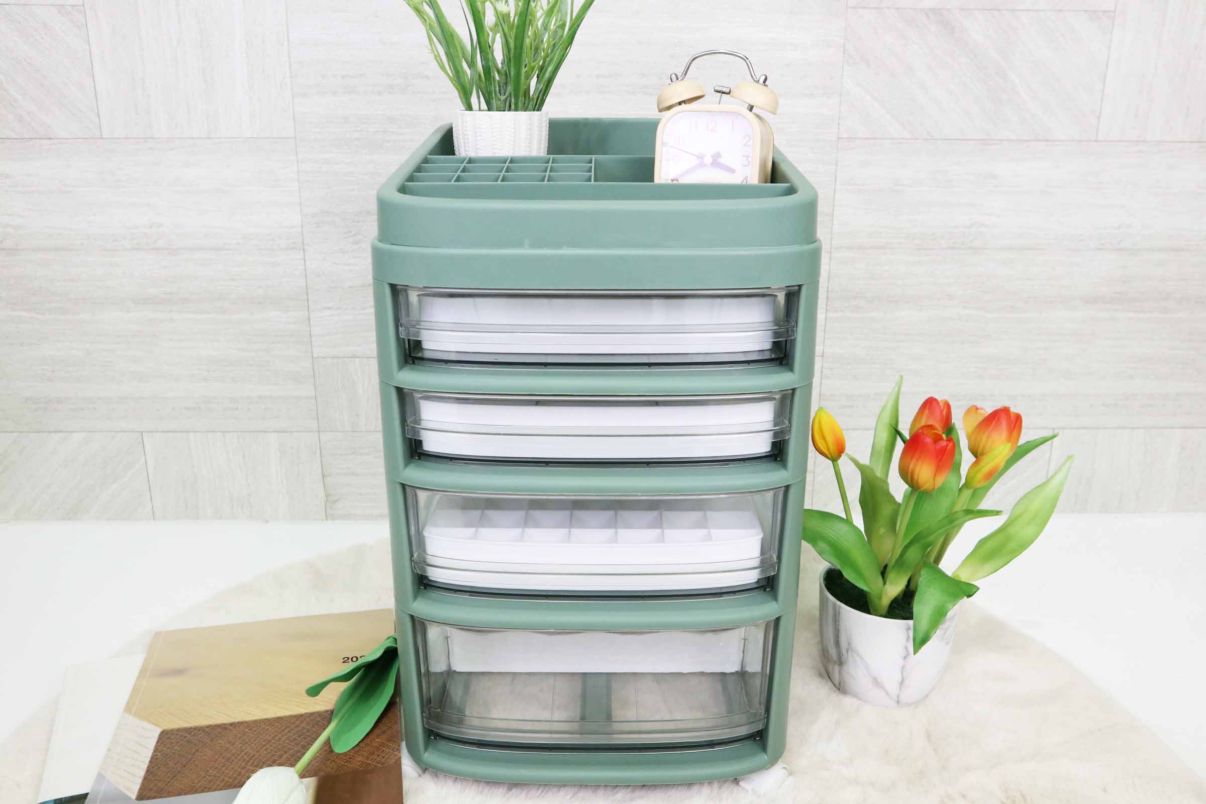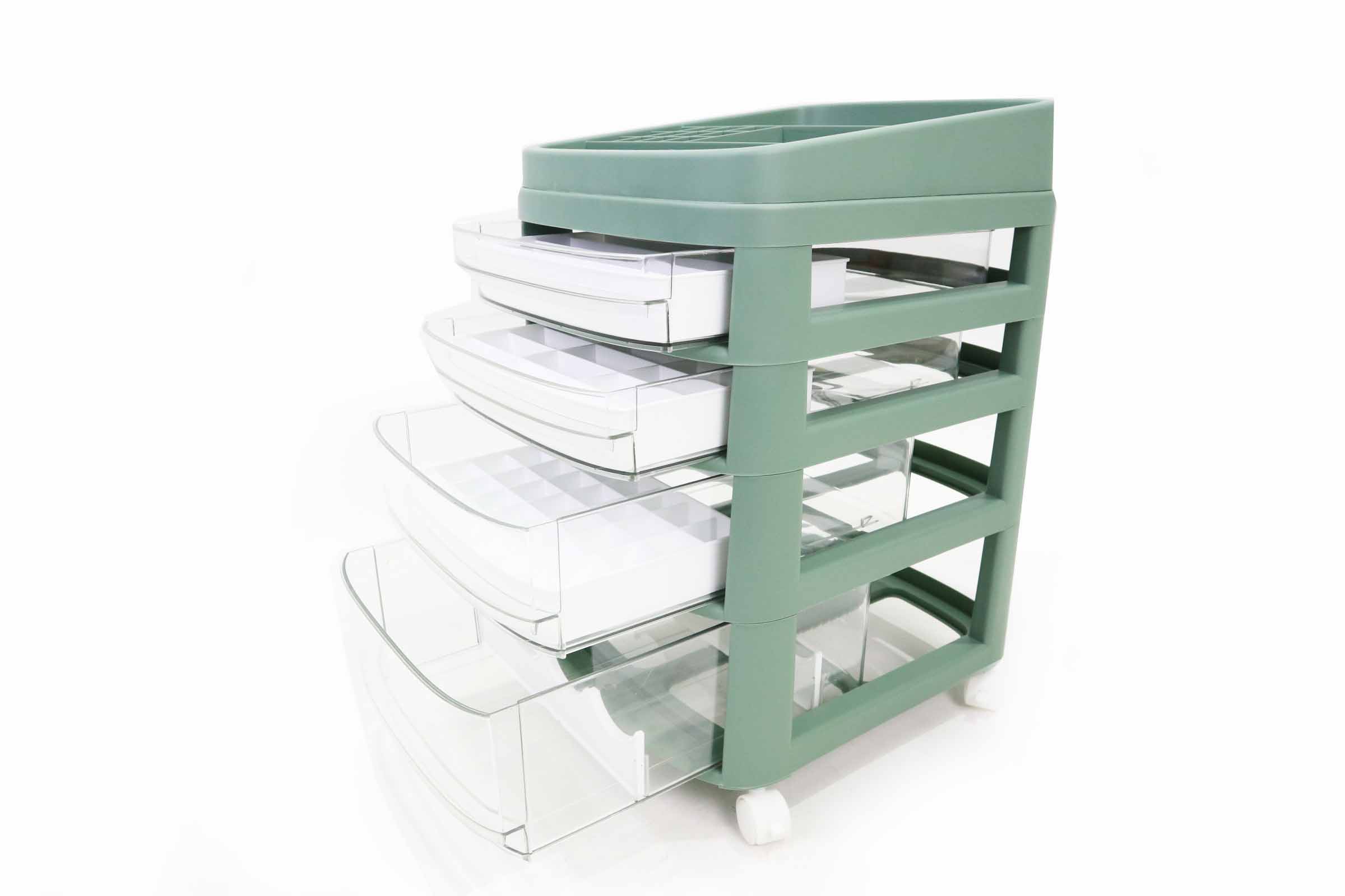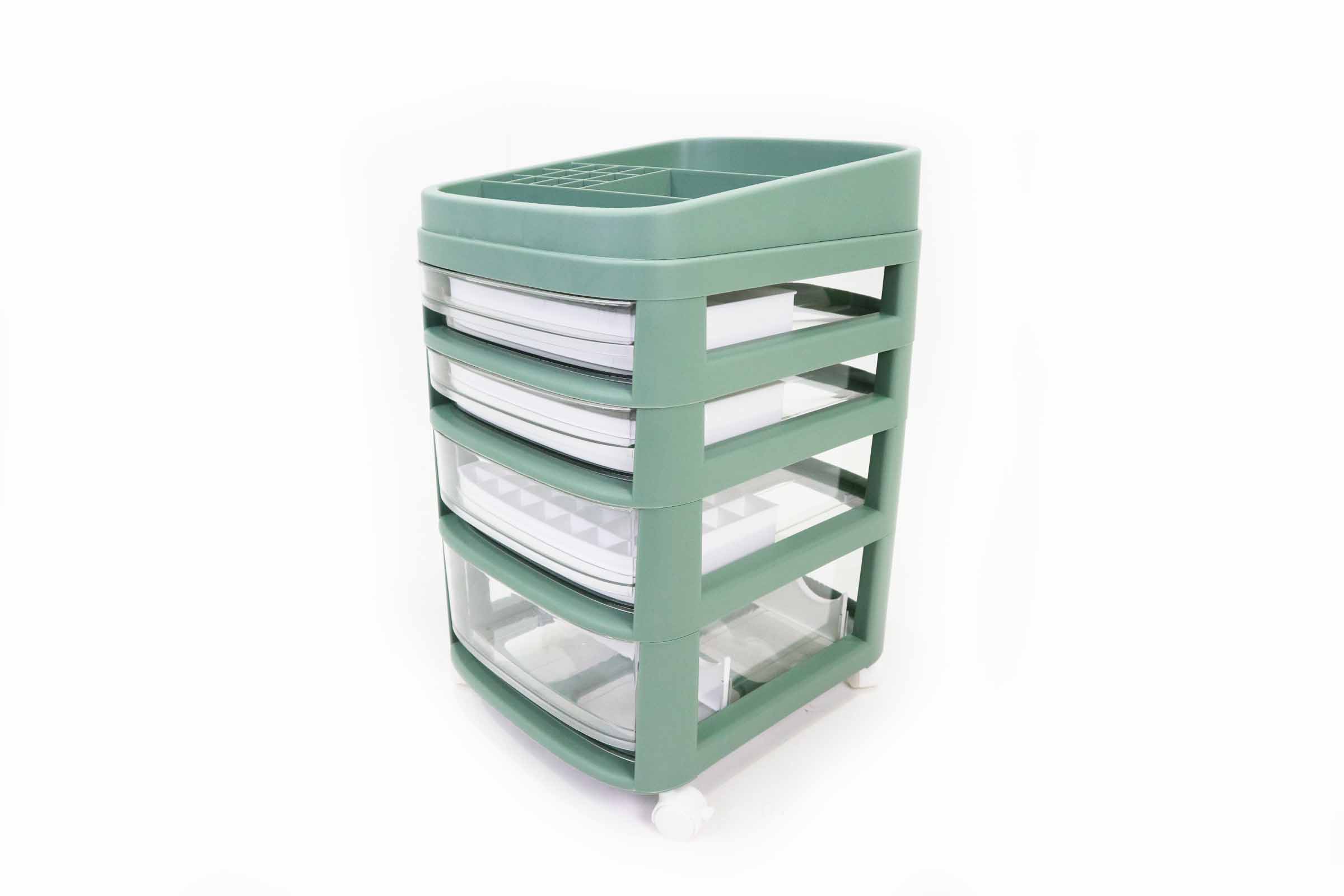 Storage shelf ลิ้นชักเก็บเครื่องสำอาง ชั้นเก็บของ 4 ชั้น มีล้อ 28x34x49 cm สีเขียว ST211038GR