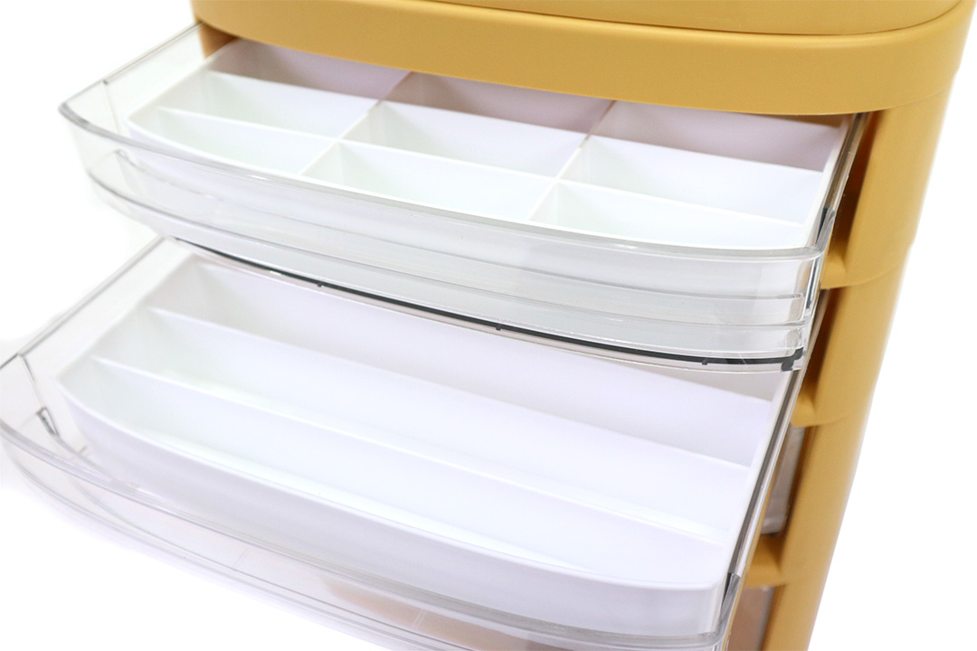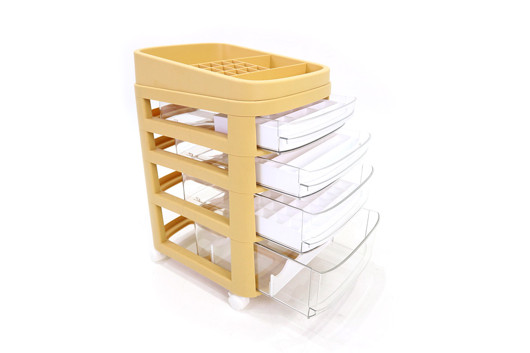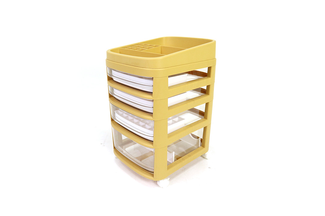 Storage shelf ลิ้นชักเก็บเครื่องสำอาง ชั้นเก็บของ 4 ชั้น มีล้อ 27x33x43 cm สีเหลือง ST211038YE