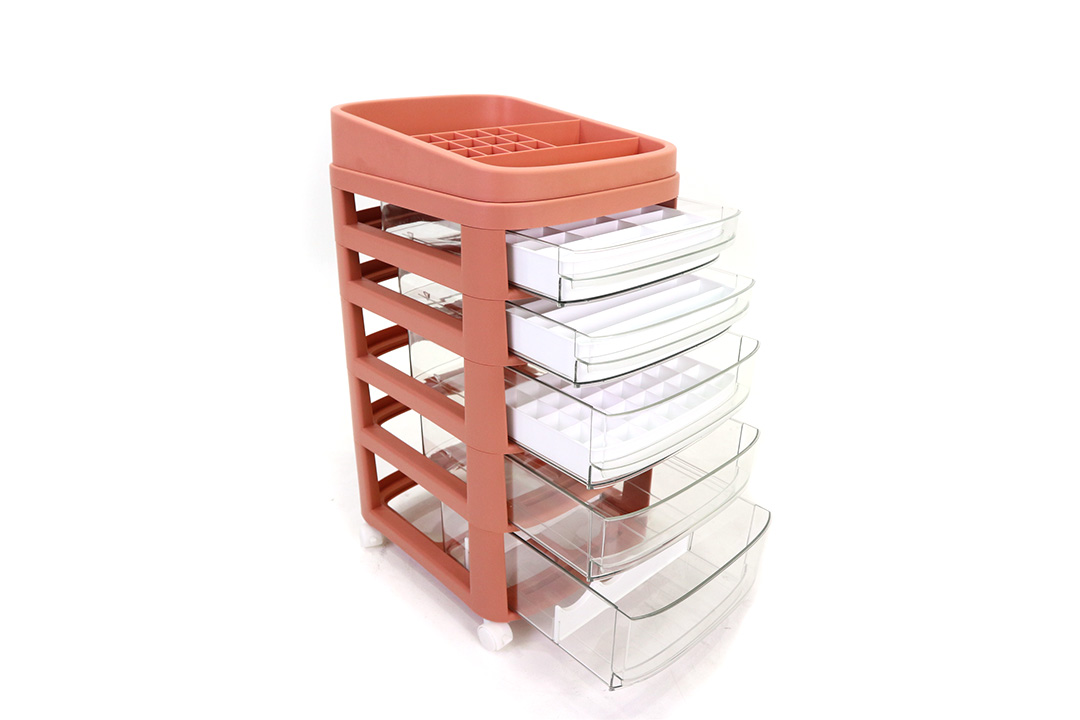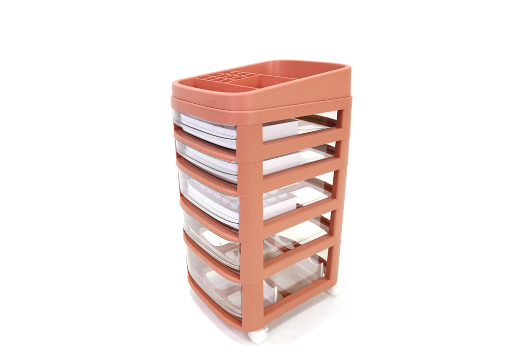 Storage shelf ลิ้นชักเก็บเครื่องสำอาง ชั้นเก็บของ 5 ชั้น มีล้อ 28x34x58 cm สีชมพู ST211039PI