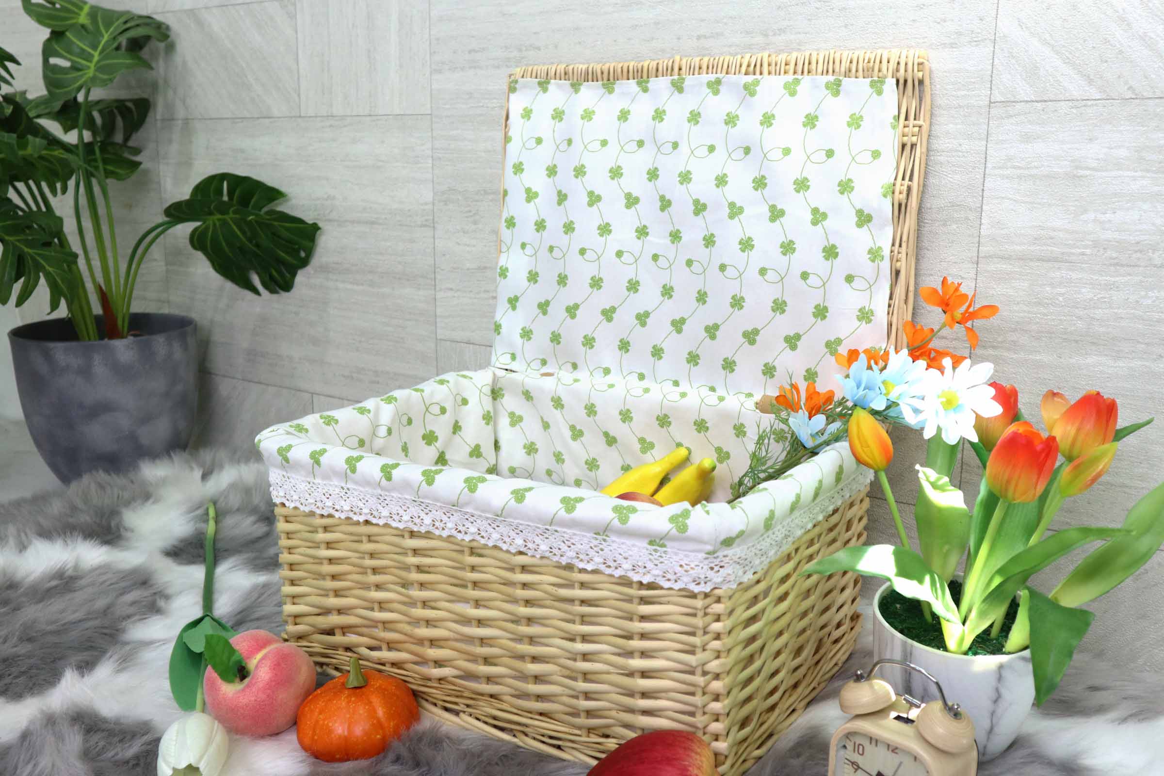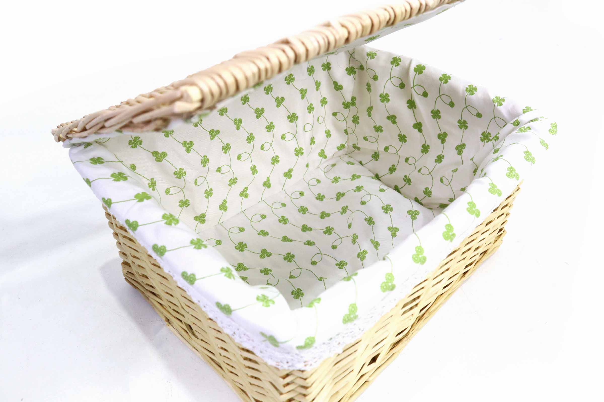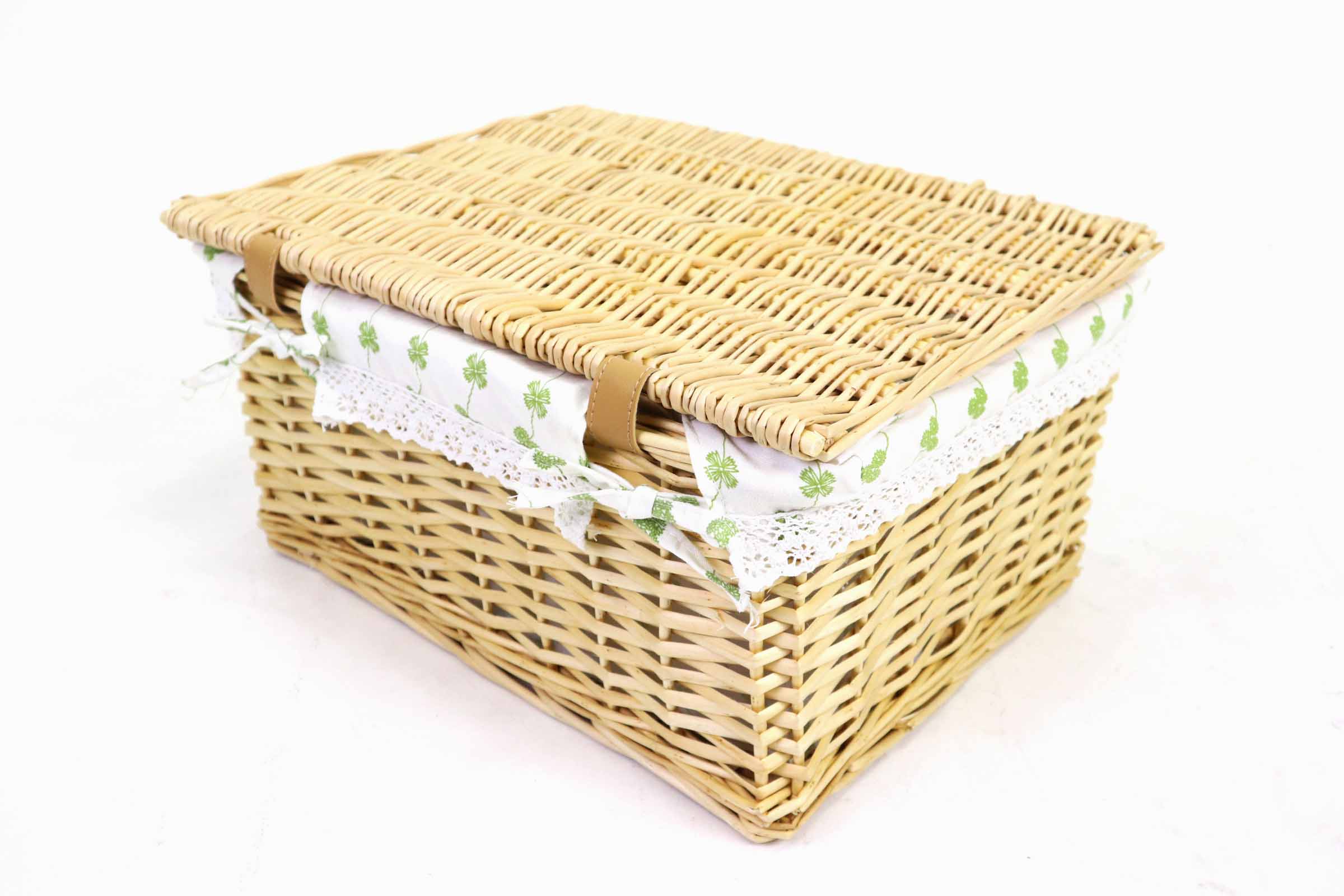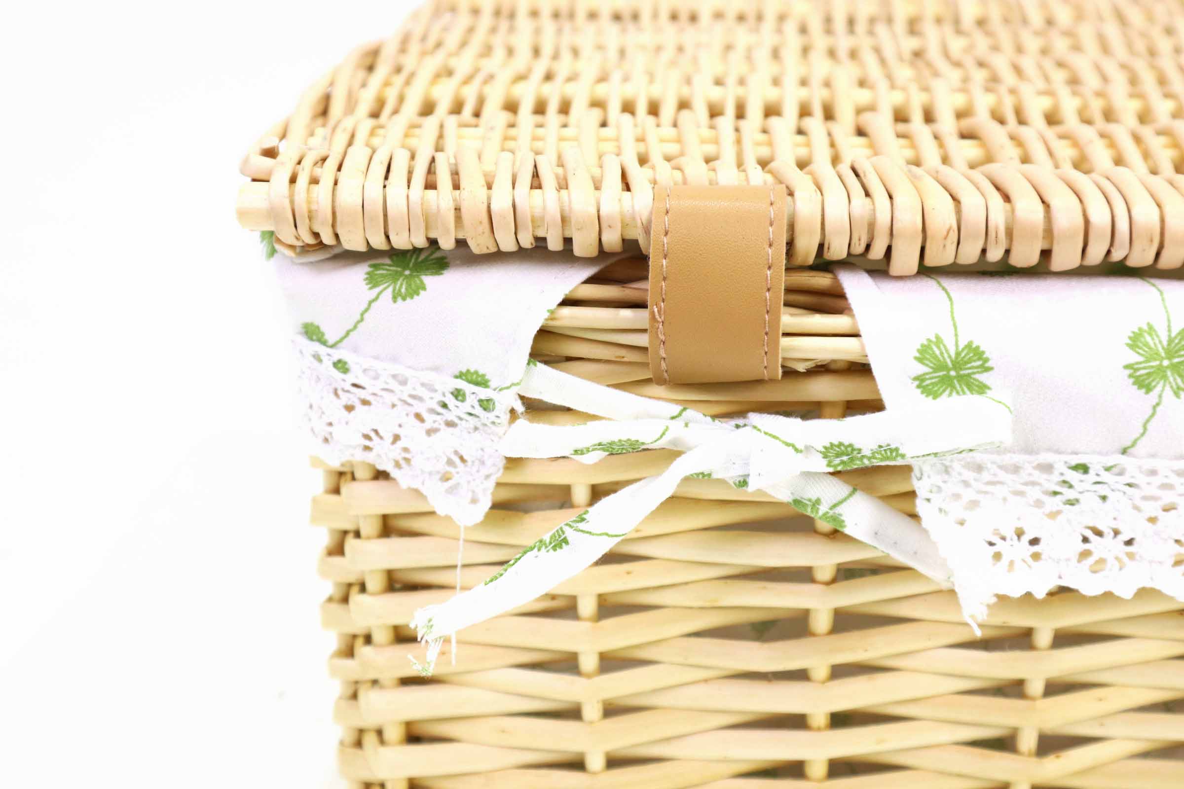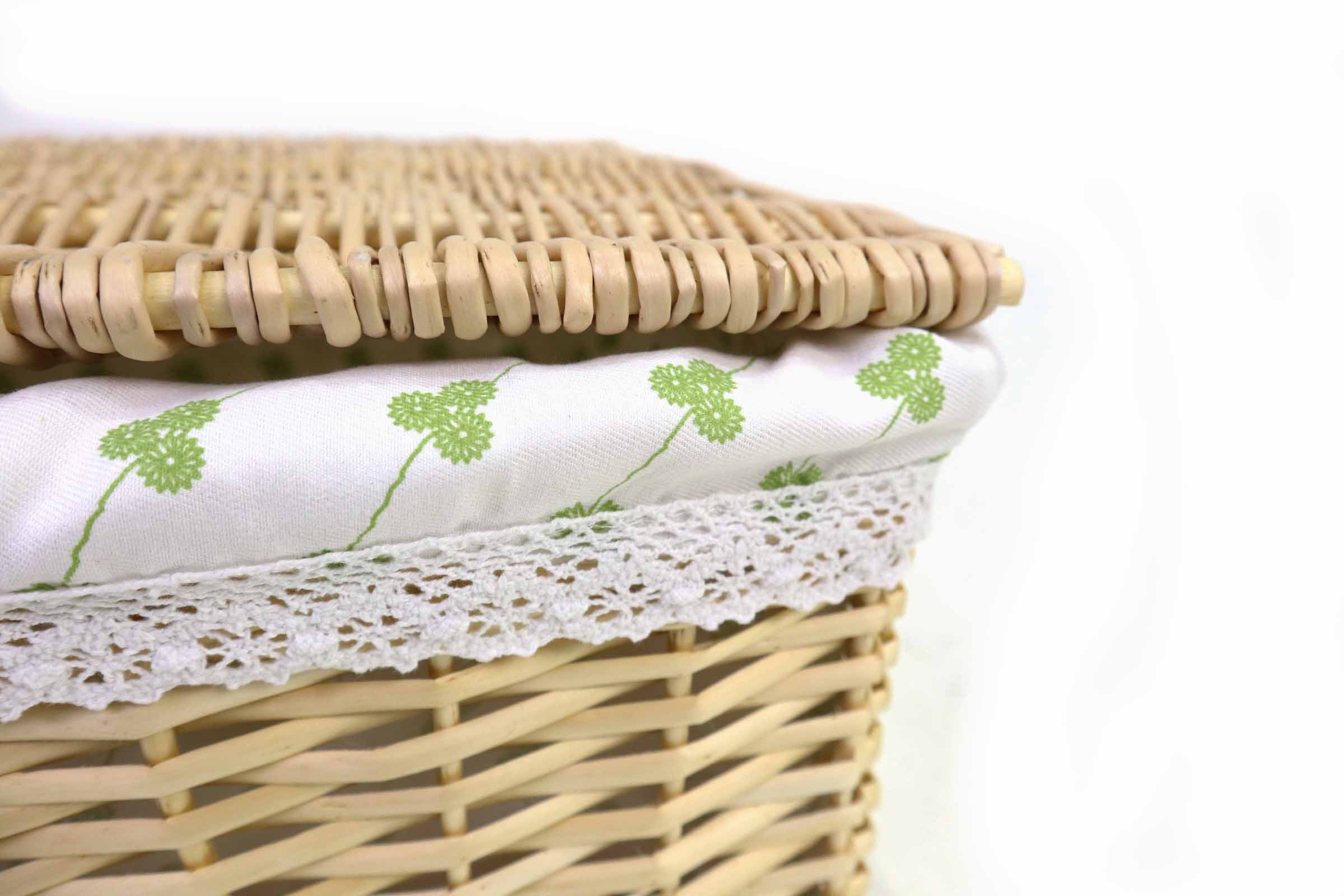 Wicker Basket ตะกร้าสาน งานHandmade ด้านในบุผ้า มีฝาปิด ขนาดใหญ่ 42x32x21 cm ST2203012L