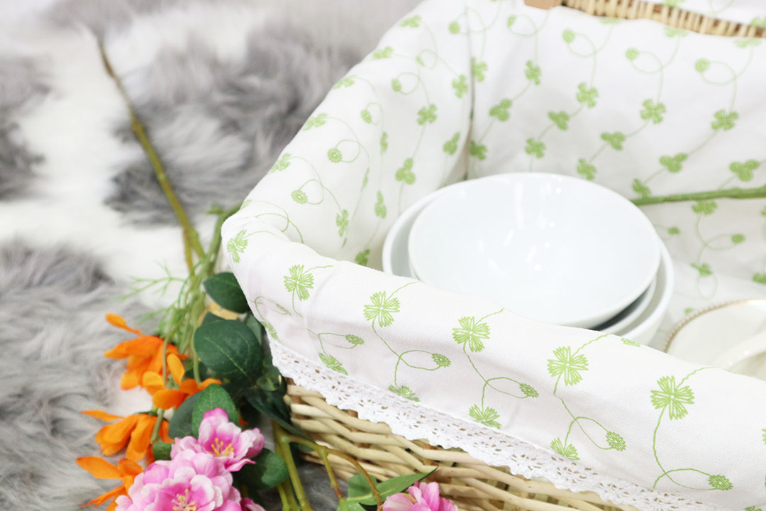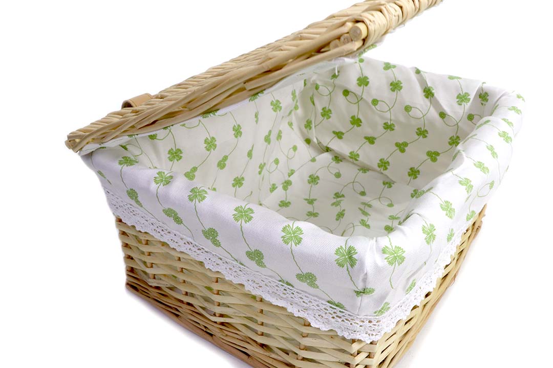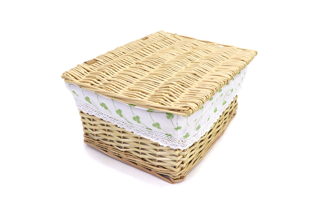 Wicker Basket ตะกร้าสาน งานHandmade ด้านในบุผ้า มีฝาปิด ขนาดกลาง 37x28x18 cm ST2203012M
