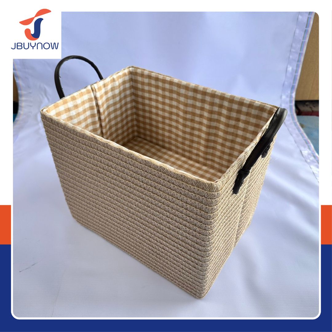 Storage Basket ตะกร้าสานพลาสติก มีหูหิ้ว ทรงสี่เหลี่ยม ไซส์ใหญ่ 35x26x30 cm สีเบจ ST2203015L