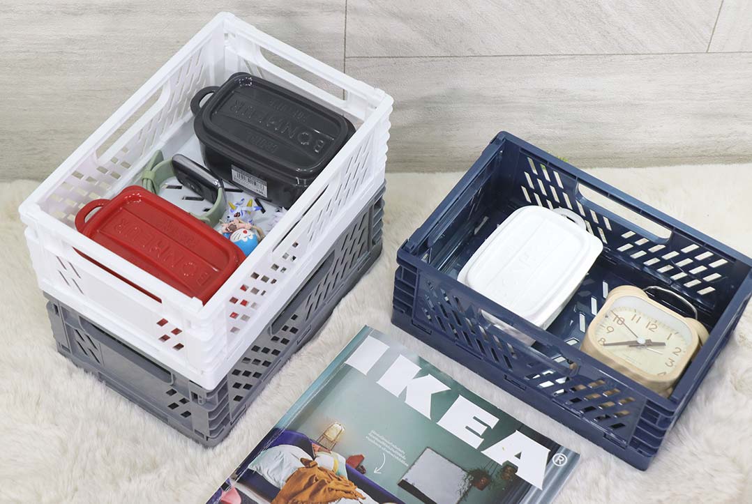 Storage Basket ตะกร้าใส่ของพลาสติก พับได้ JP Quality 22x15x9cm สีขาว 495 WHITE
