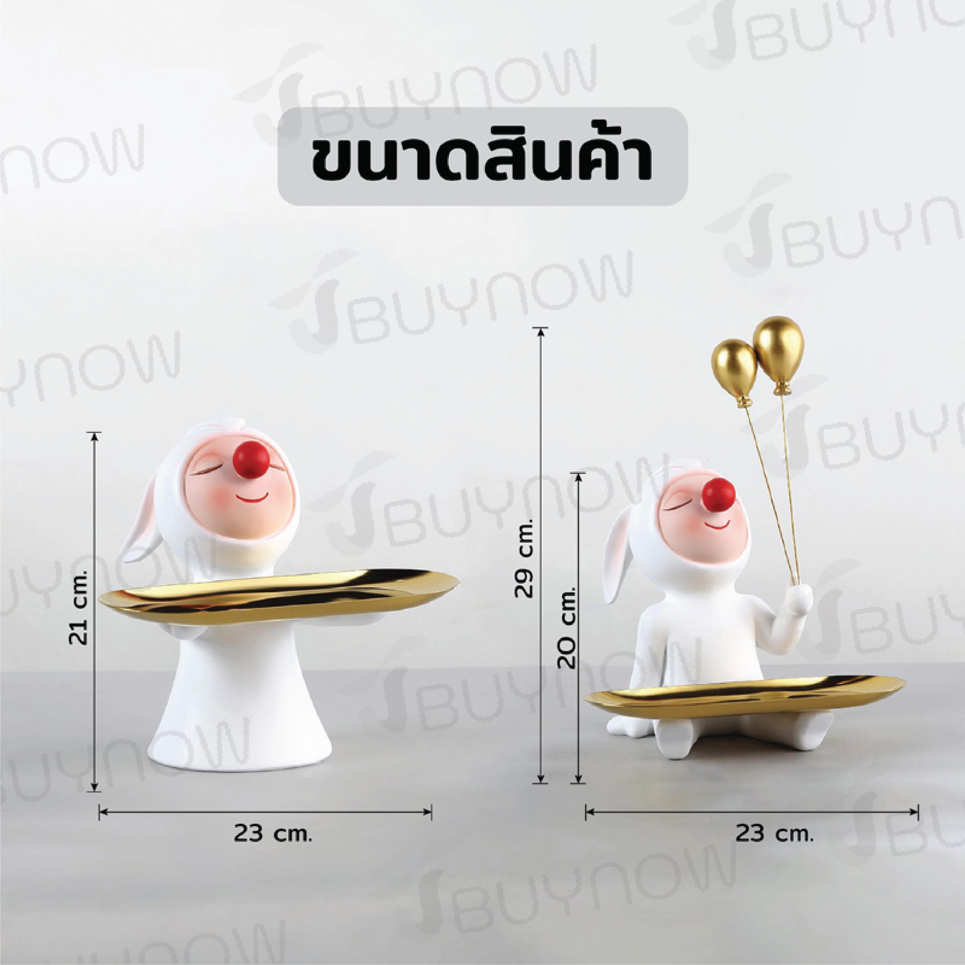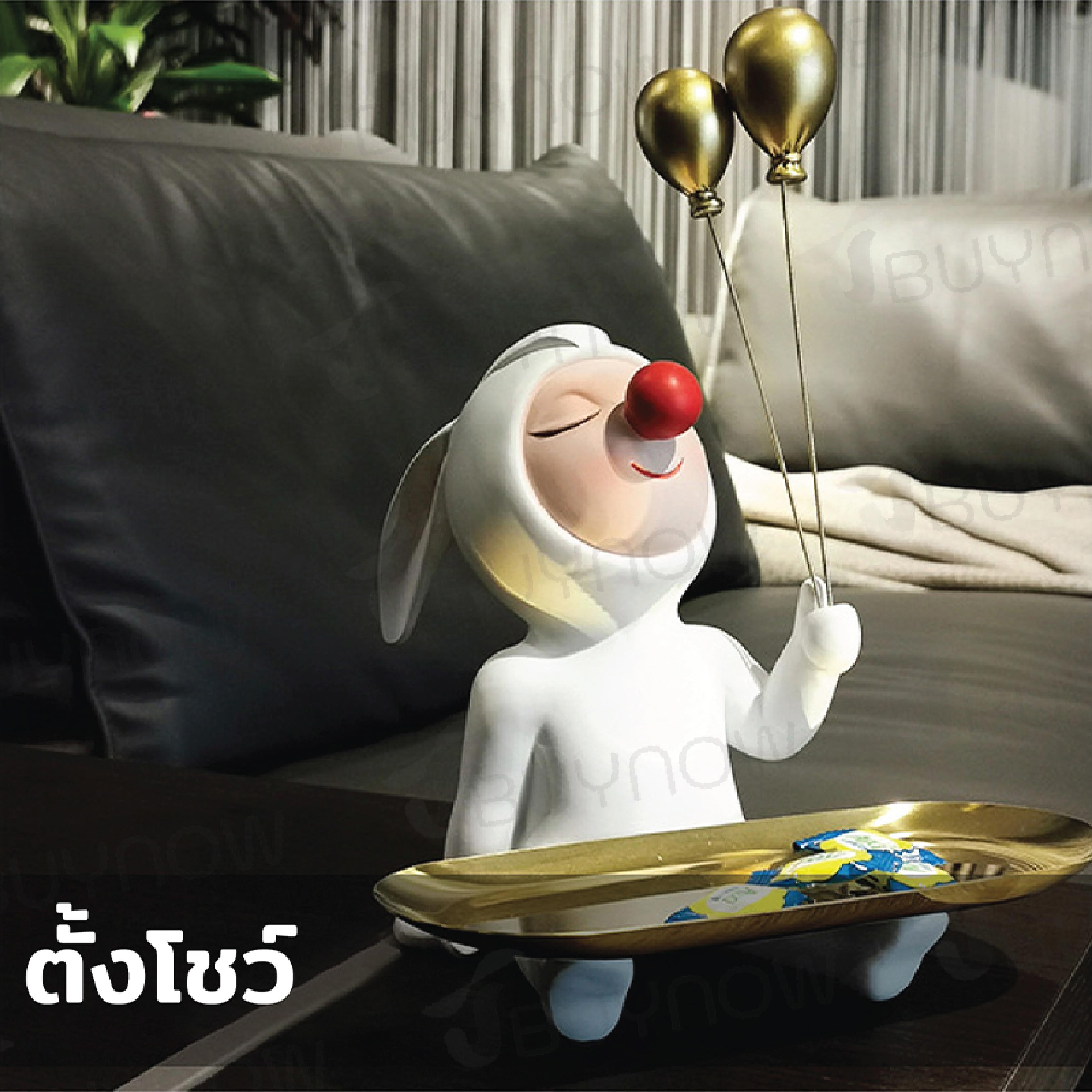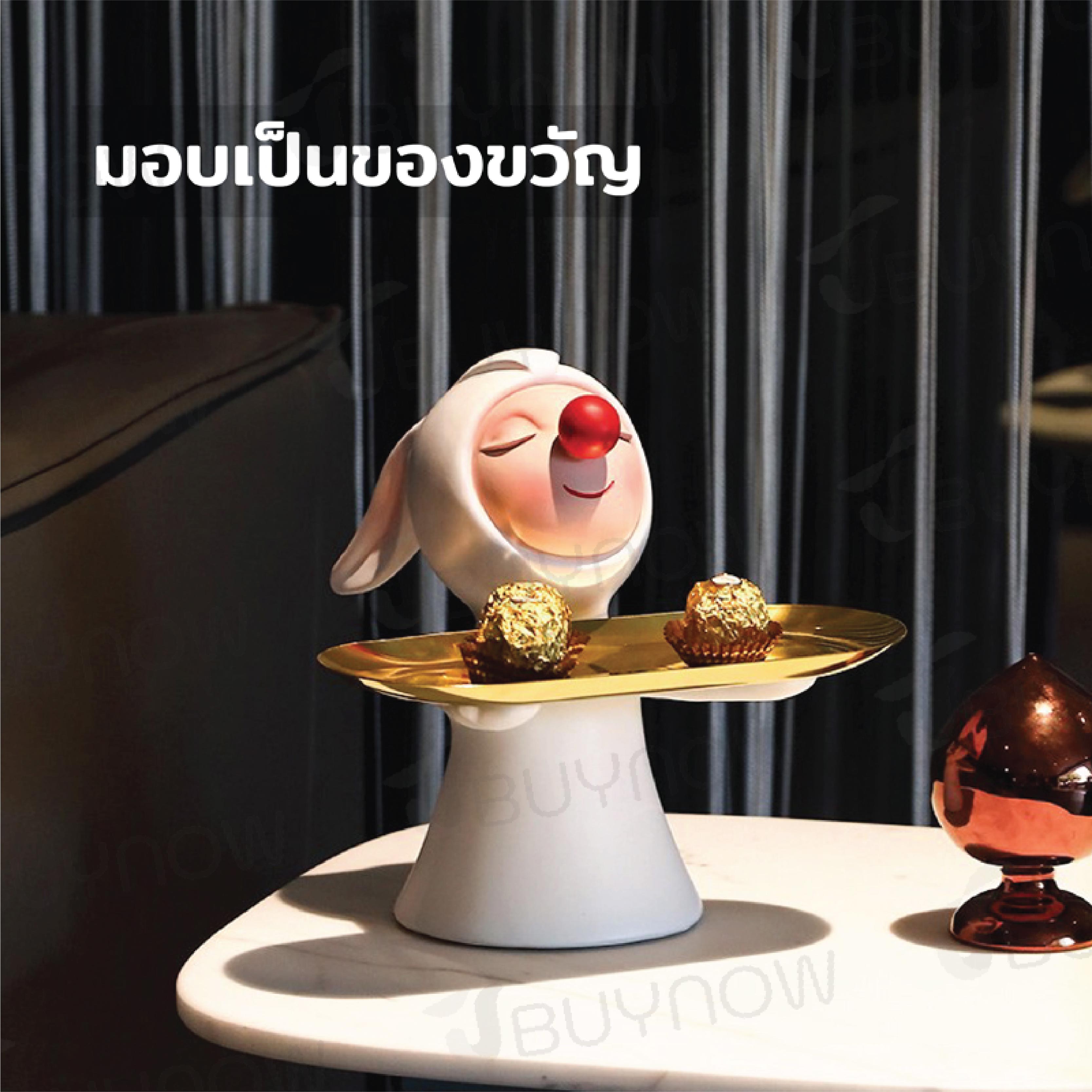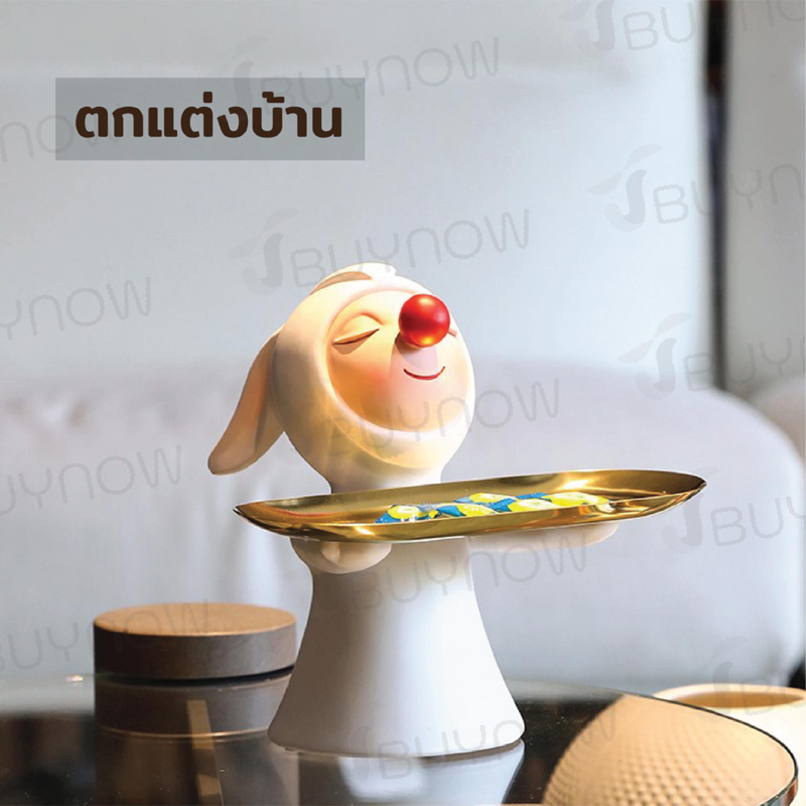- ตุ๊กตาเรซิ่นกระต่ายถือถาด ถาดสีทอง