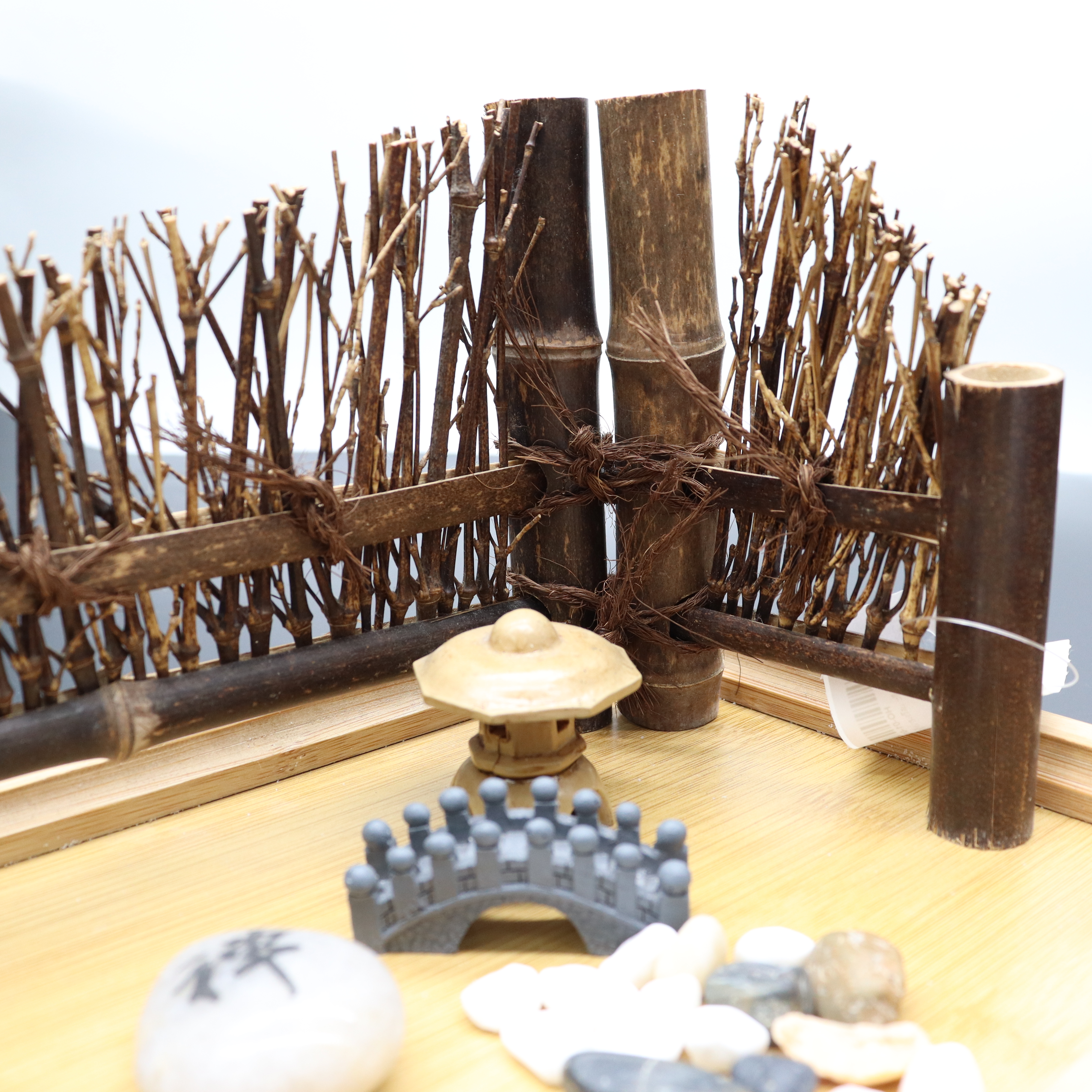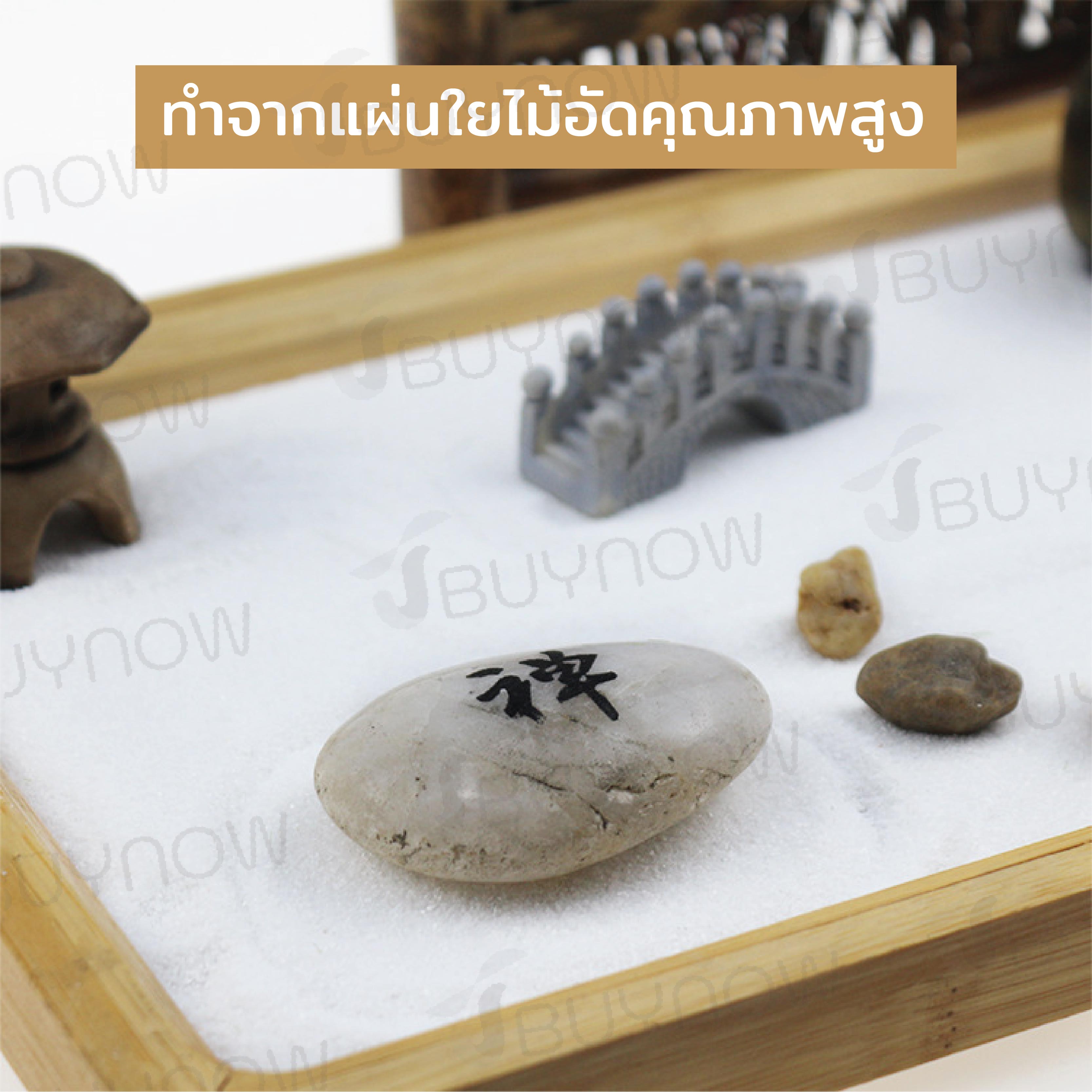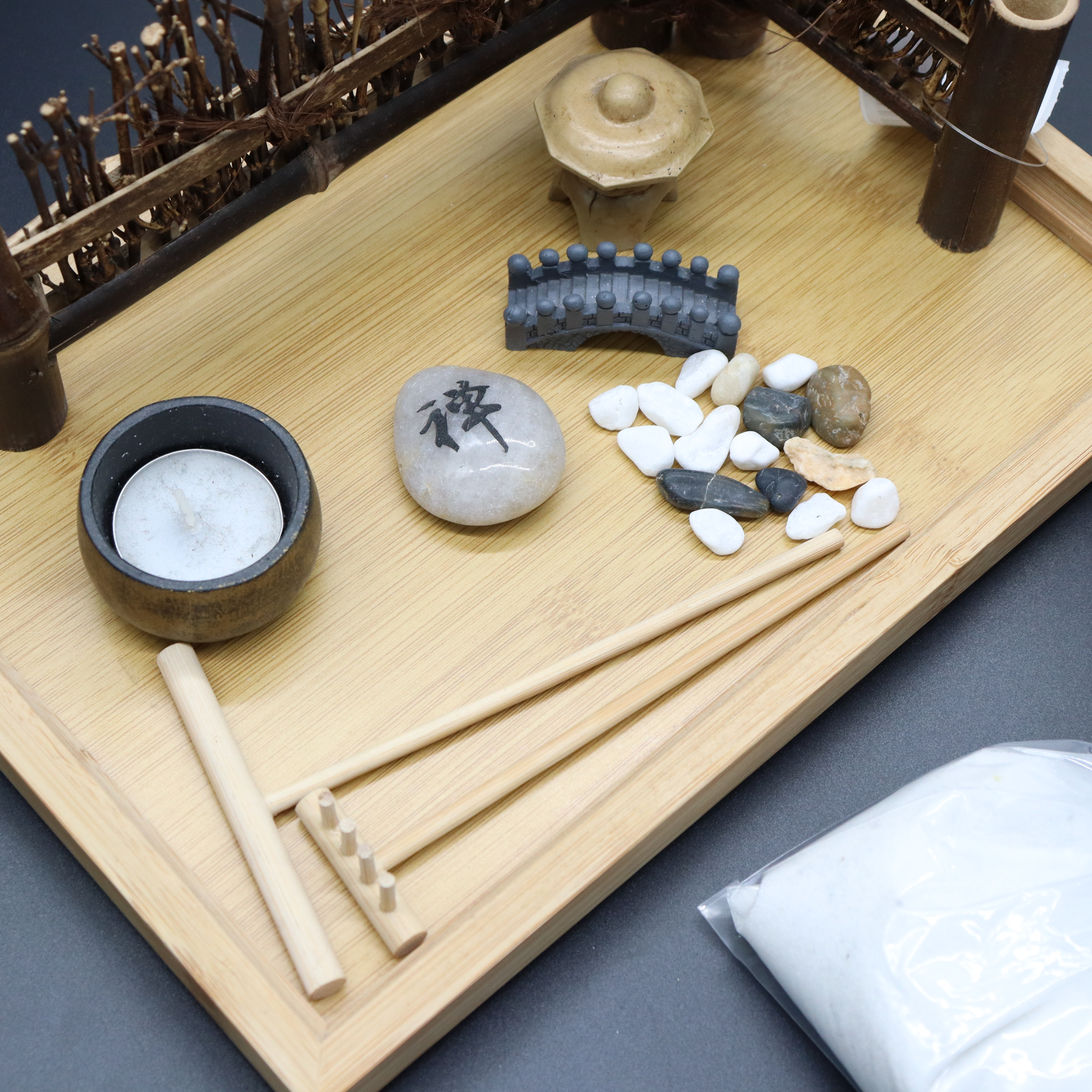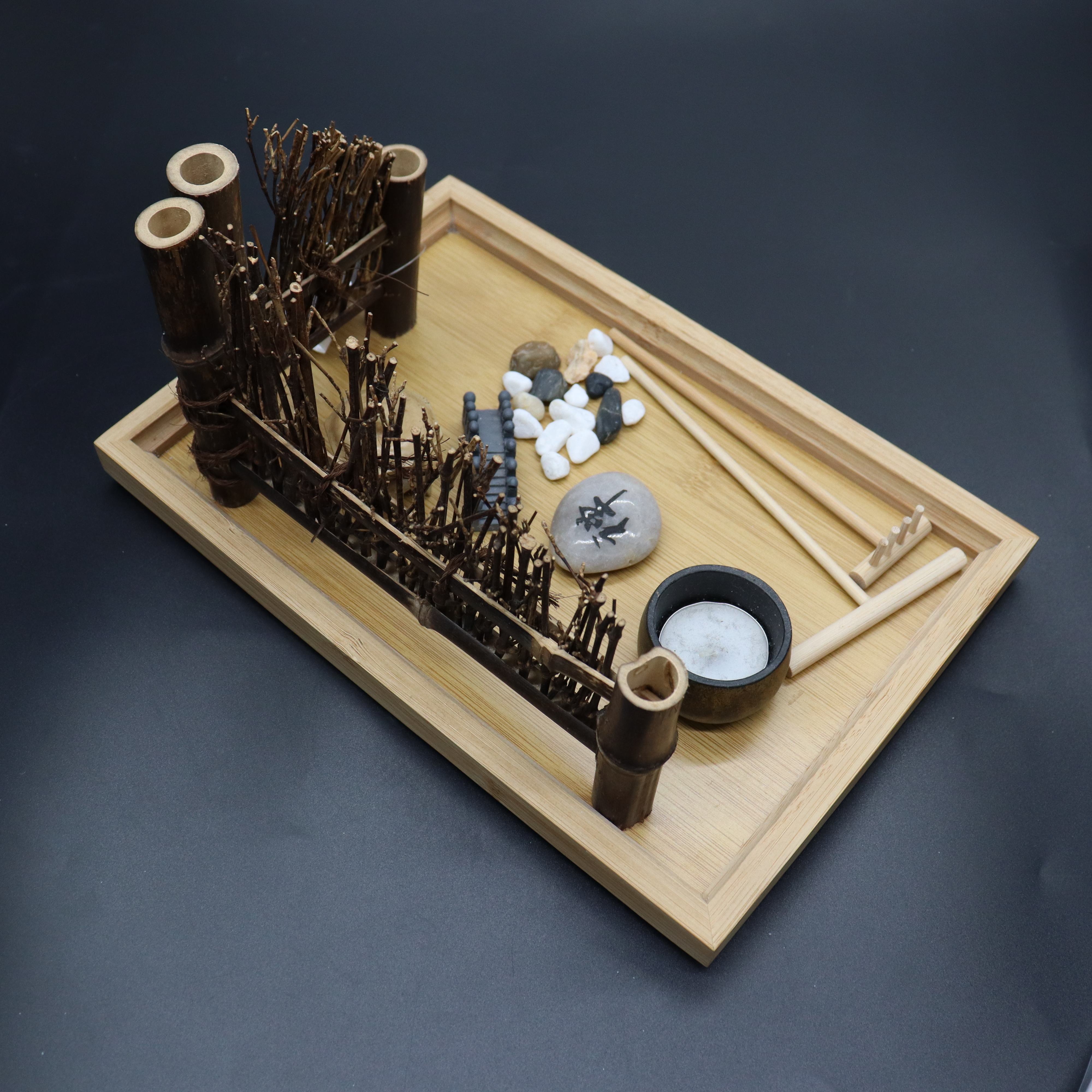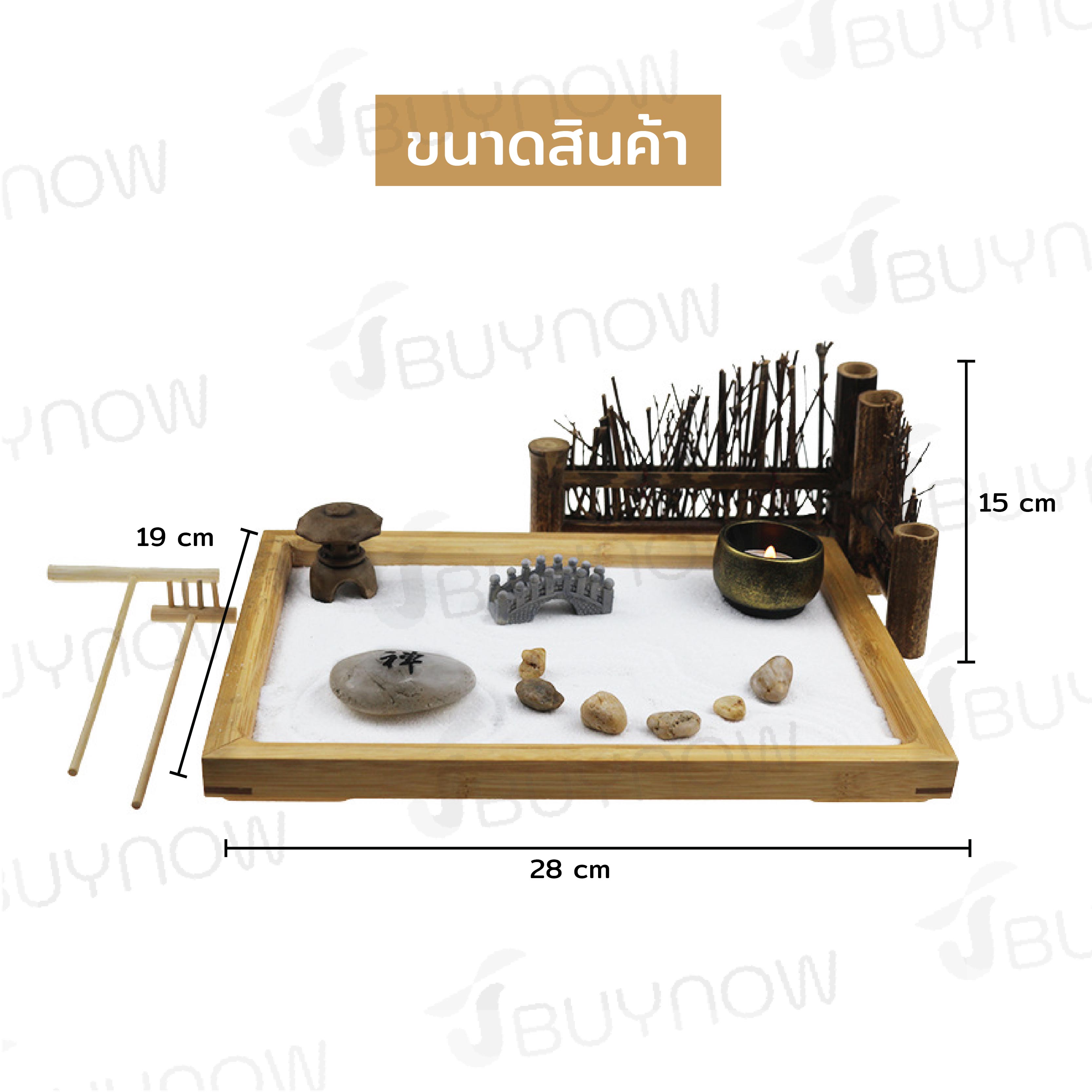 - ถาดไม้ไผ่ ทรายละเอียดฝอกขาว และหินธรรมชาติ