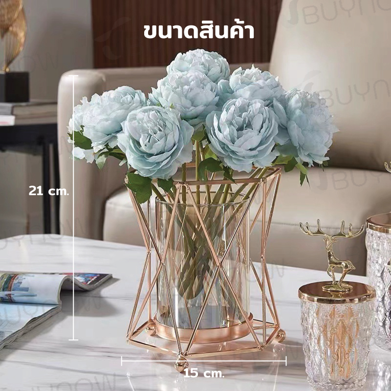 - ดอกไม้ทำจากพลาสติก ดอกโบตั๋นสีฟ้า 9 ดอก