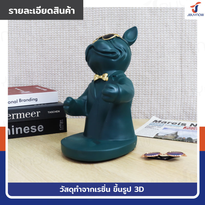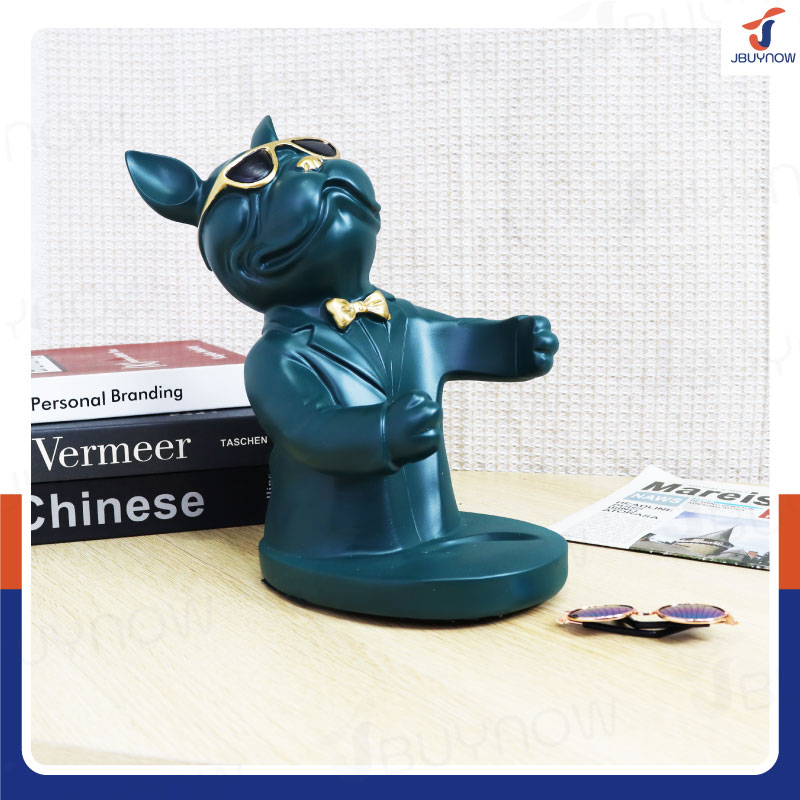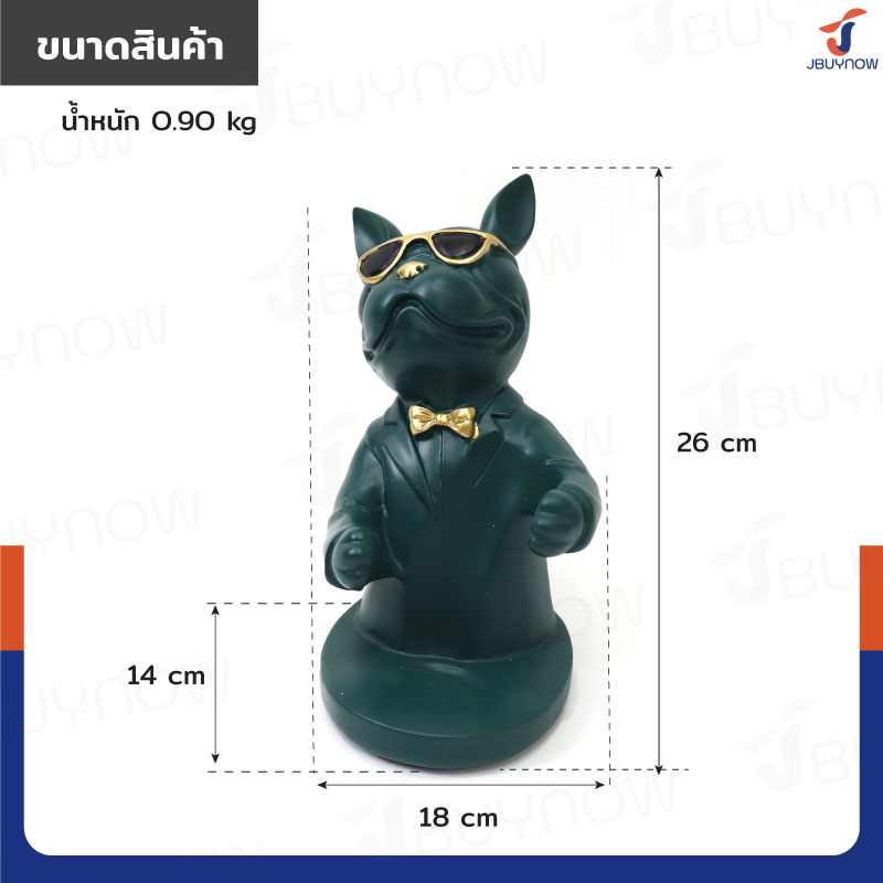 รูปปั้นเรซิ่น บลูด็อก 14x18x26 ซม. ที่ตั้งขวดไวน์ รุ่น 2937 สีเขียว