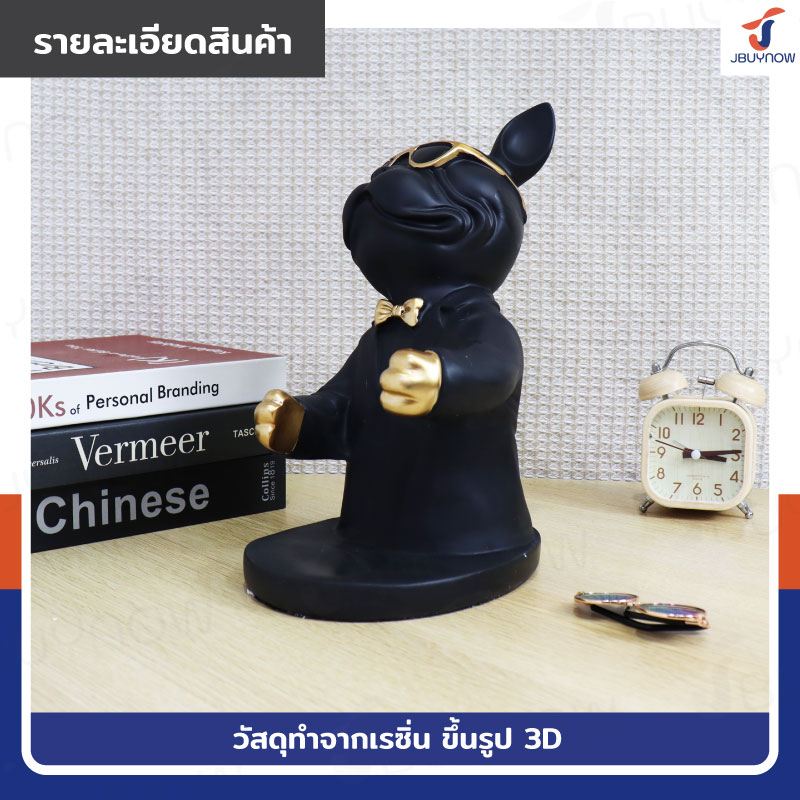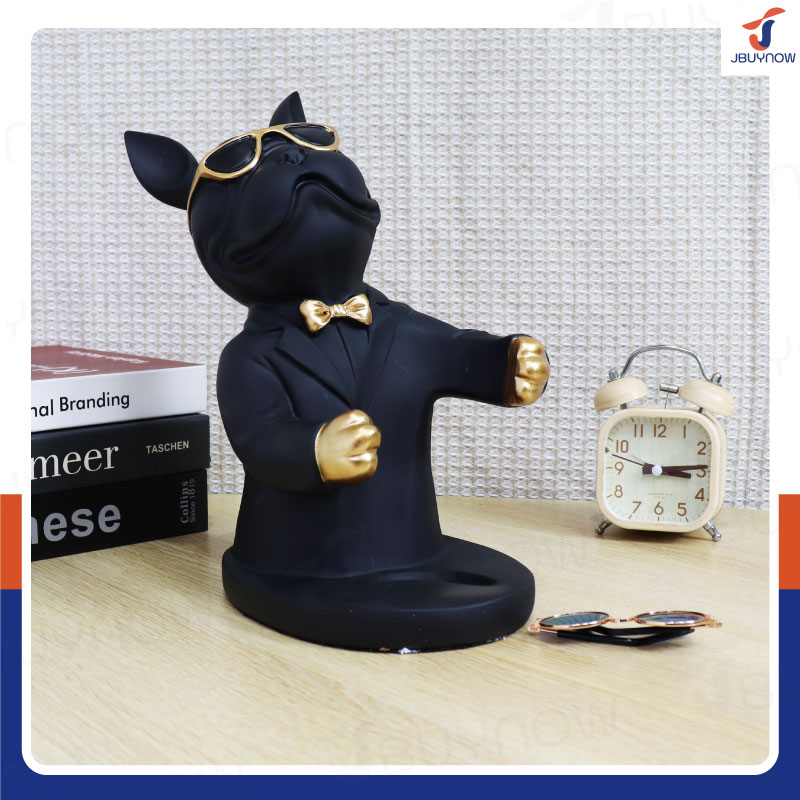 รูปปั้นเรซิ่น บลูด็อก 14x18x26 ซม. ที่ตั้งขวดไวน์ รุ่น 2937 สีดำ