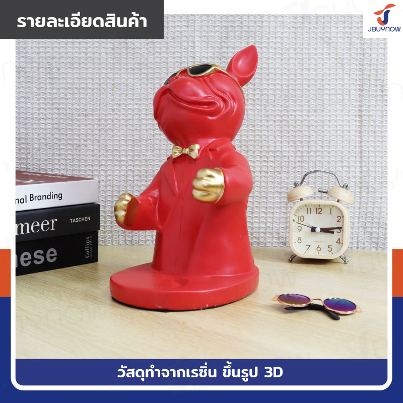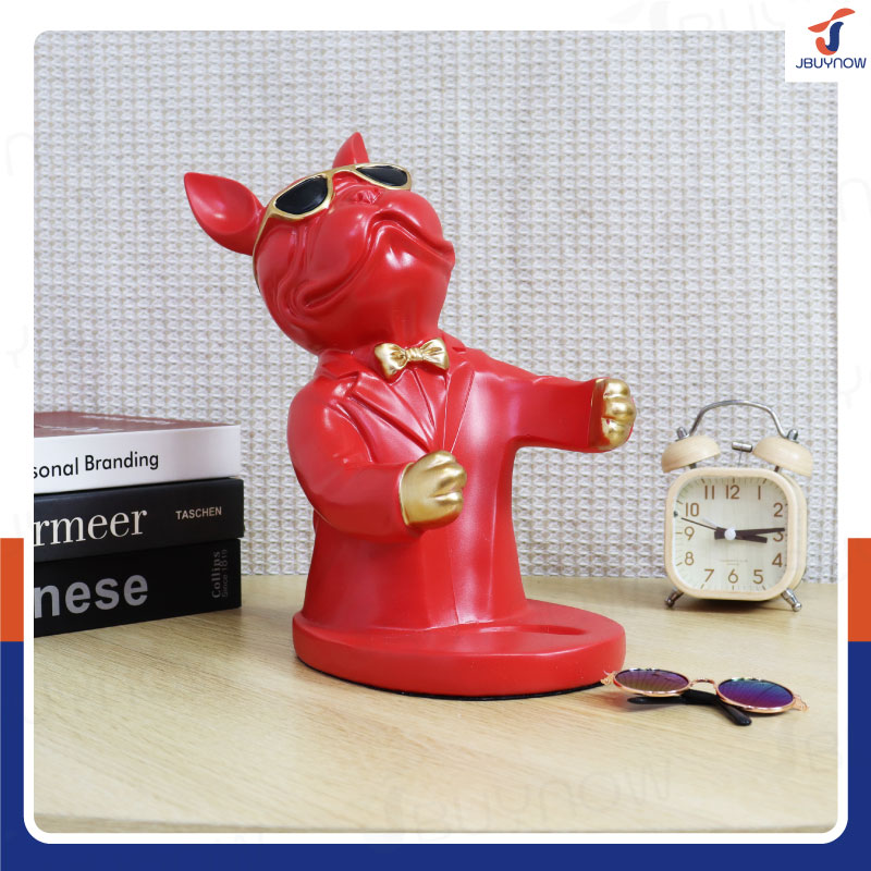 รูปปั้นเรซิ่น บลูด็อก 14x18x26 ซม. ที่ตั้งขวดไวน์ รุ่น 2937 สีแดง