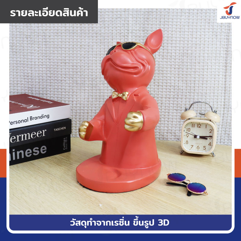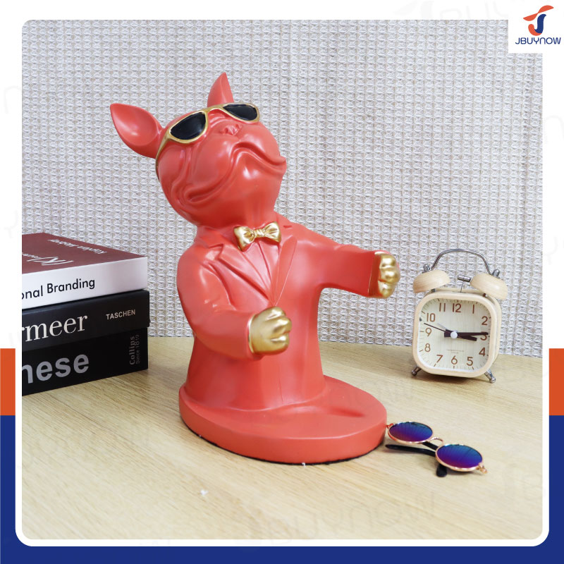 รูปปั้นเรซิ่น บลูด็อก 14x18x26 ซม. ที่ตั้งขวดไวน์ รุ่น 2937 สีส้ม