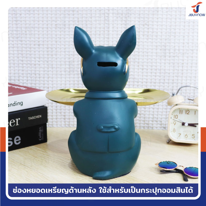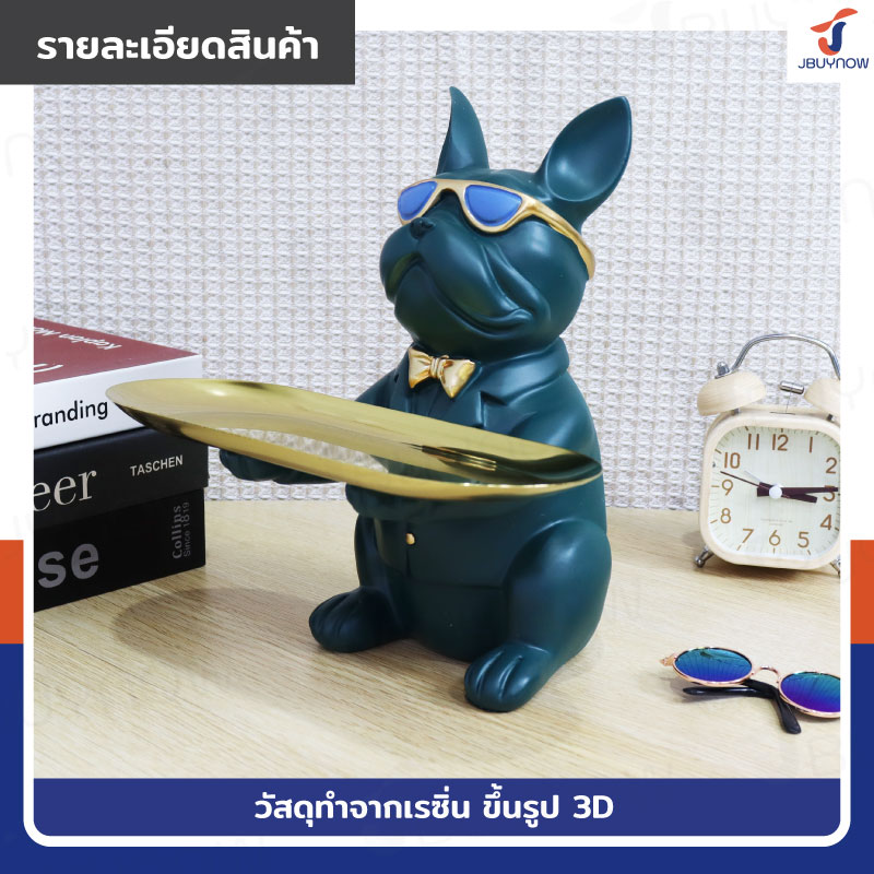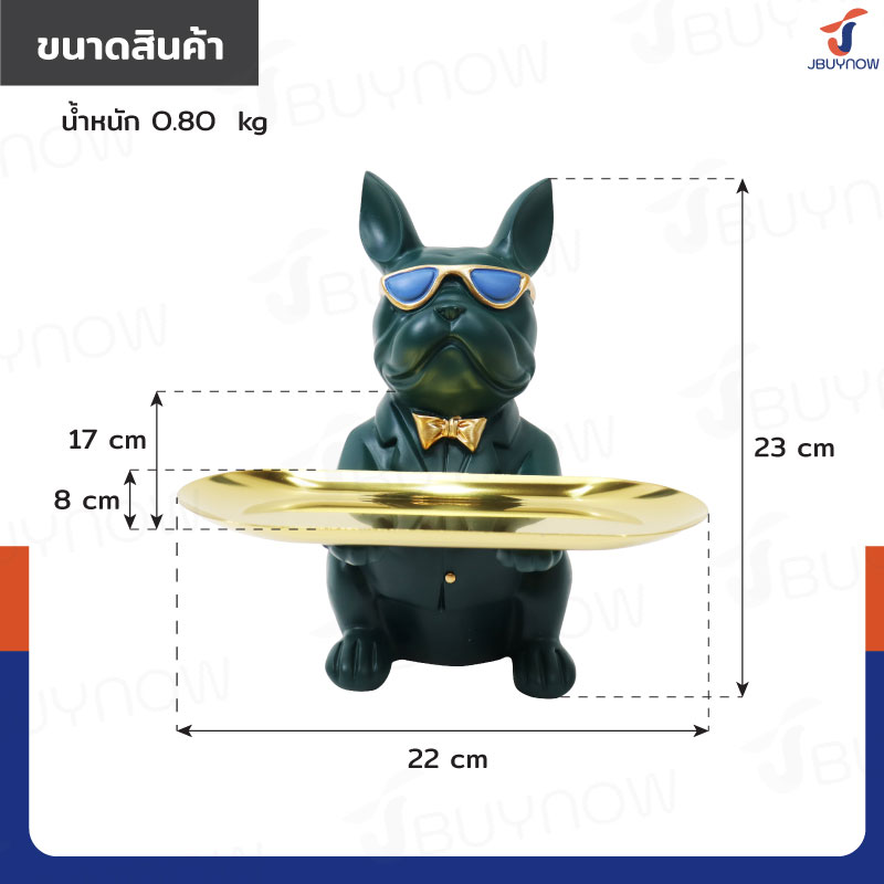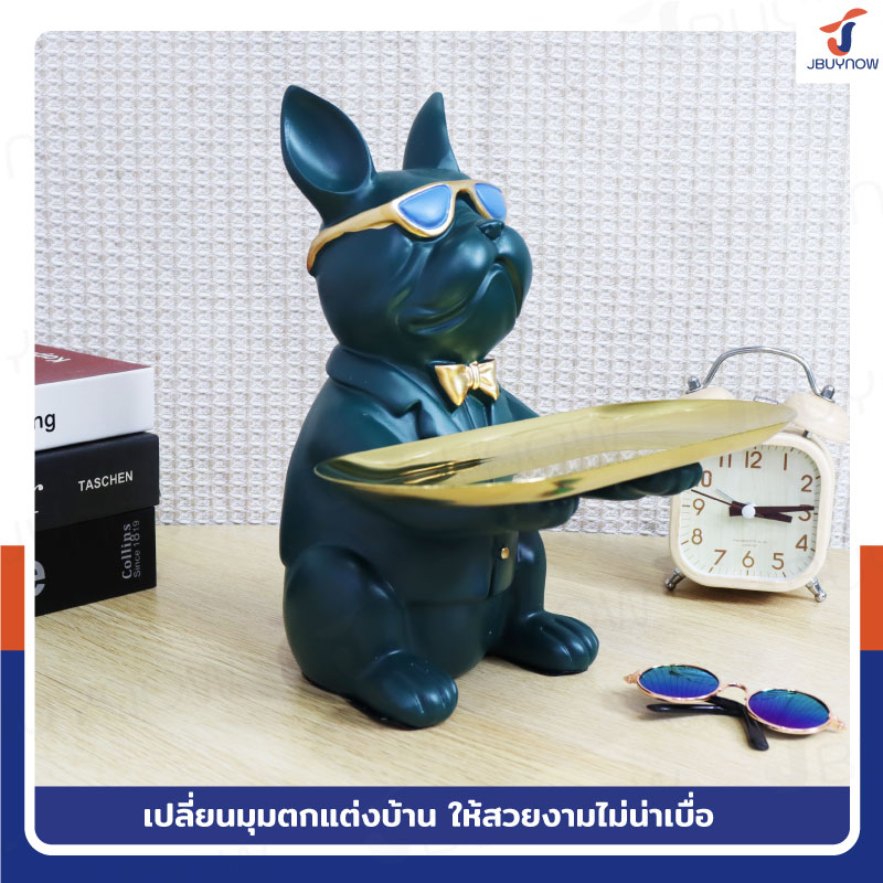 รูปปั้นเรซิ่น บลูด็อก 17x22x23 ซม. มีถาดวางของ รุ่น 2630 สีเขียว