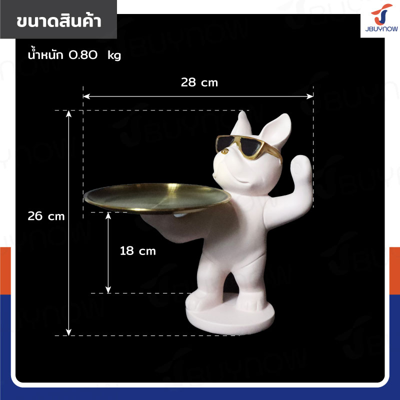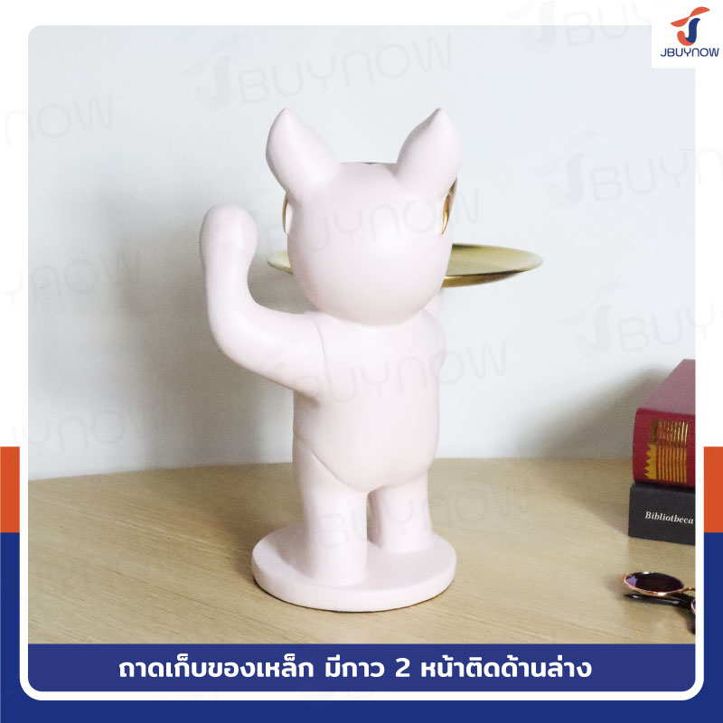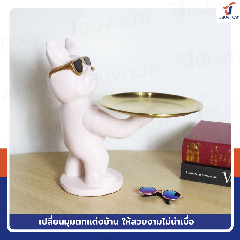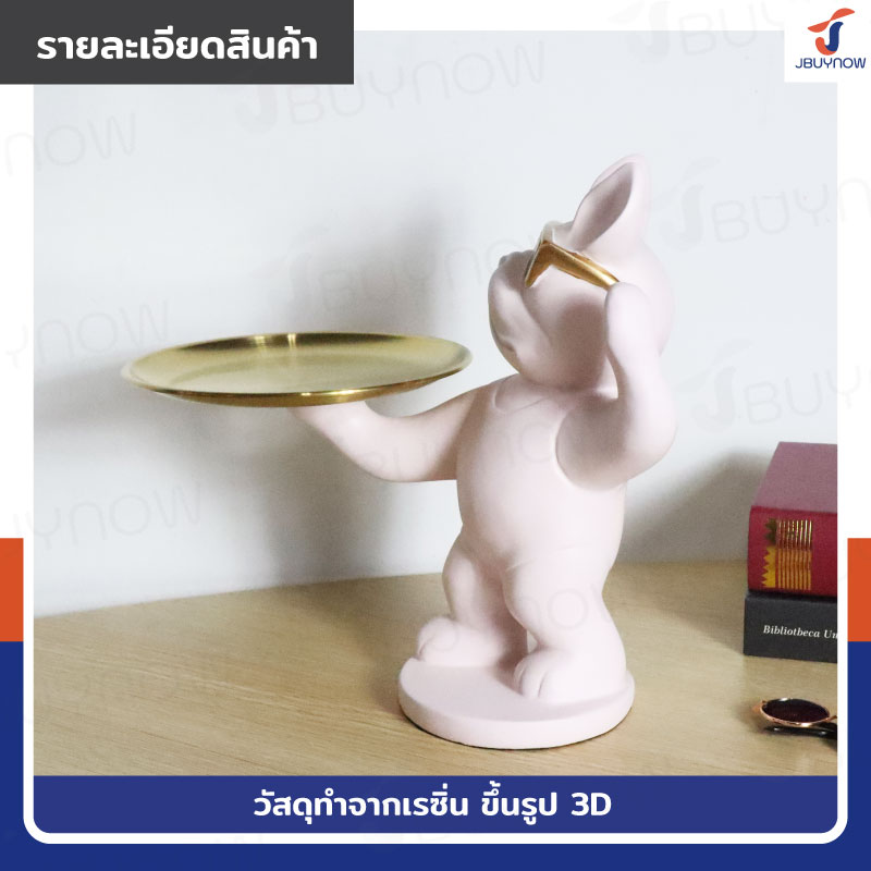 รูปปั้นเรซิ่น บลูด็อก 18x28x26 มีถาดวางของ รุ่น 2948 สีชมพู