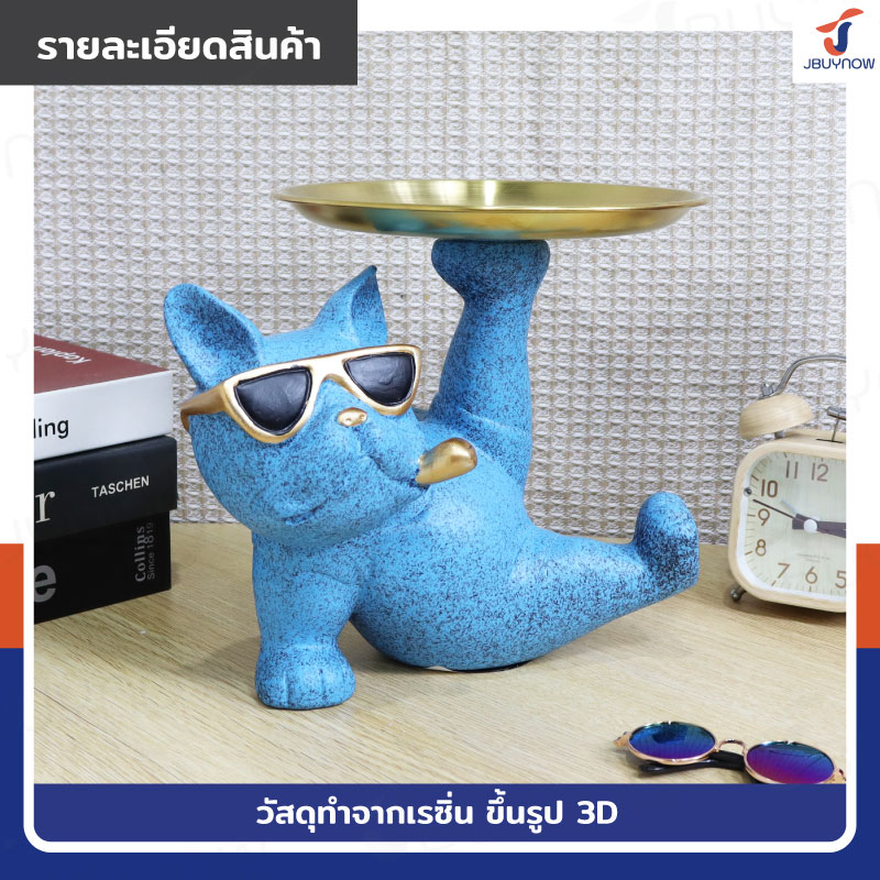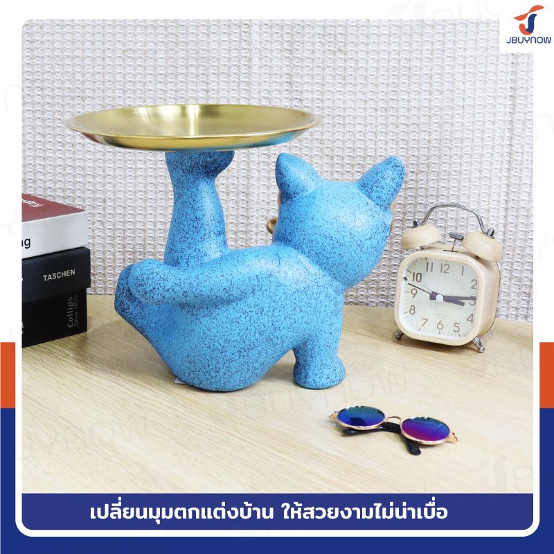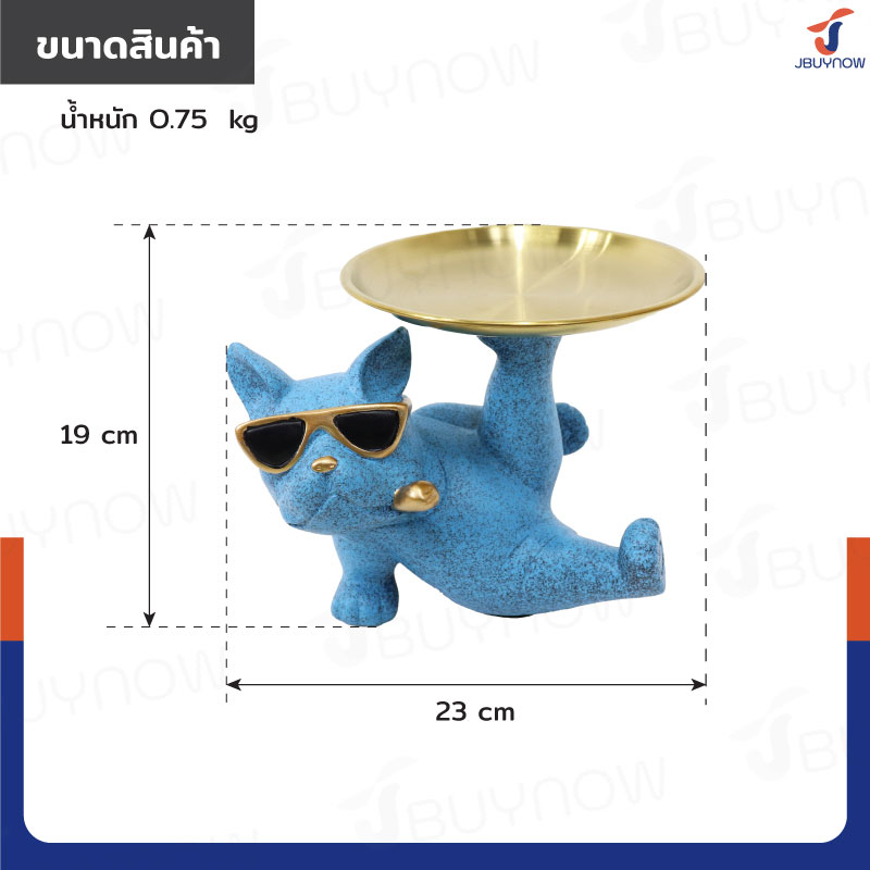 รูปปั้นเรซิ่น บลูด็อก 17x23x19 ซม.มีถาดวางของ รุ่น 2949 สีฟ้า